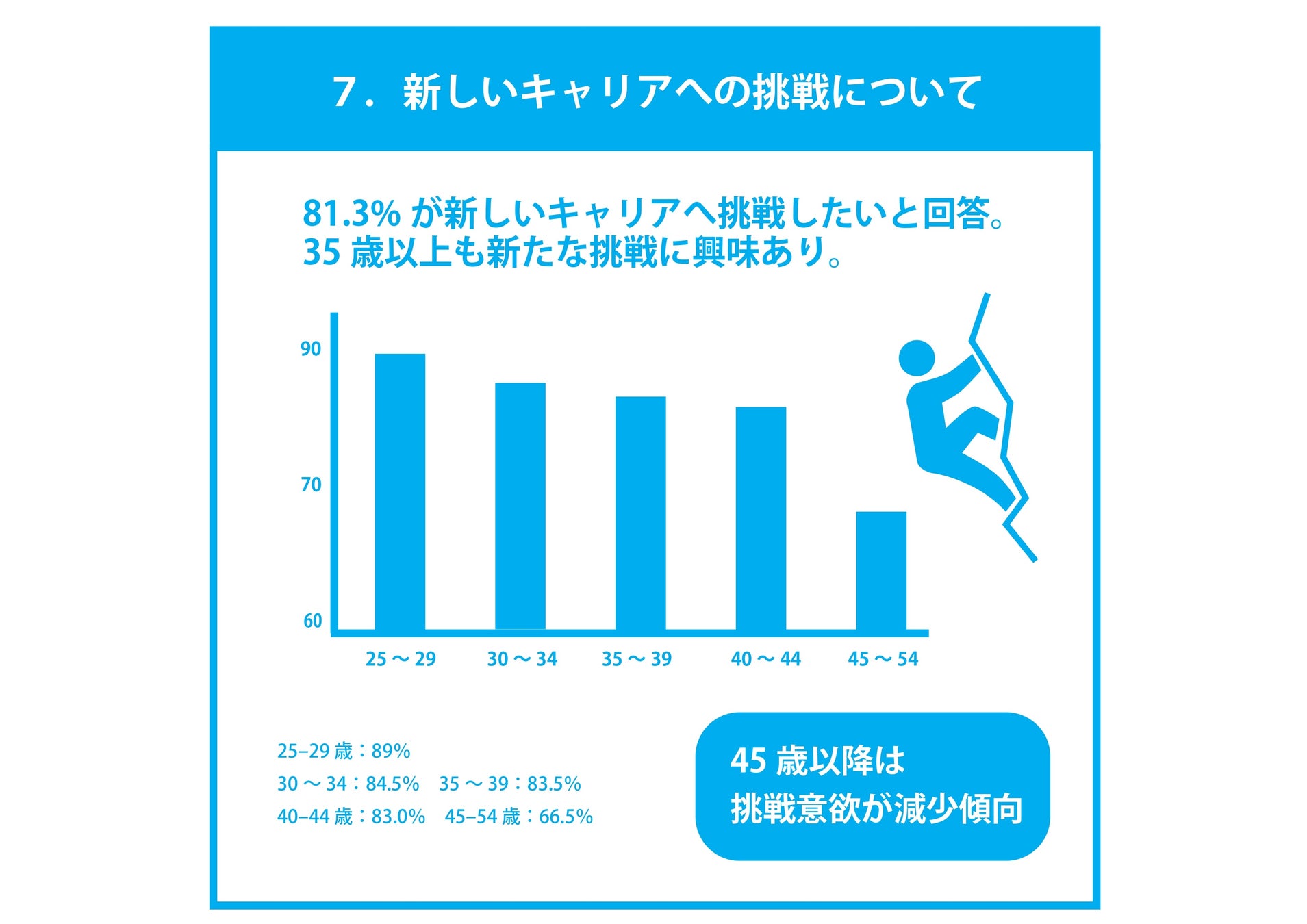 ・「81.3%に新しいキャリアへ挑戦意向あり。40歳の83%が新たな挑戦へ興味あり」
