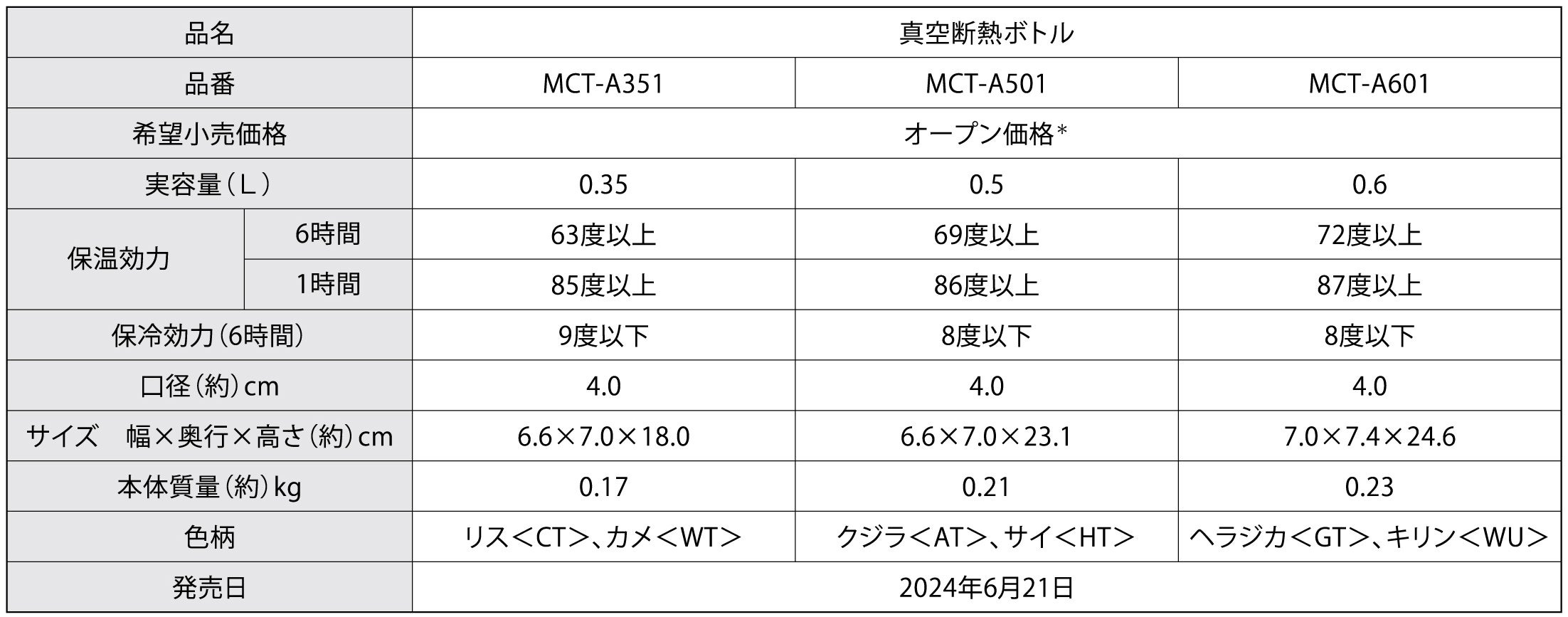 「真空断熱ボトル MCT-A351/A501/A601」 詳細・ご購入はこちら: