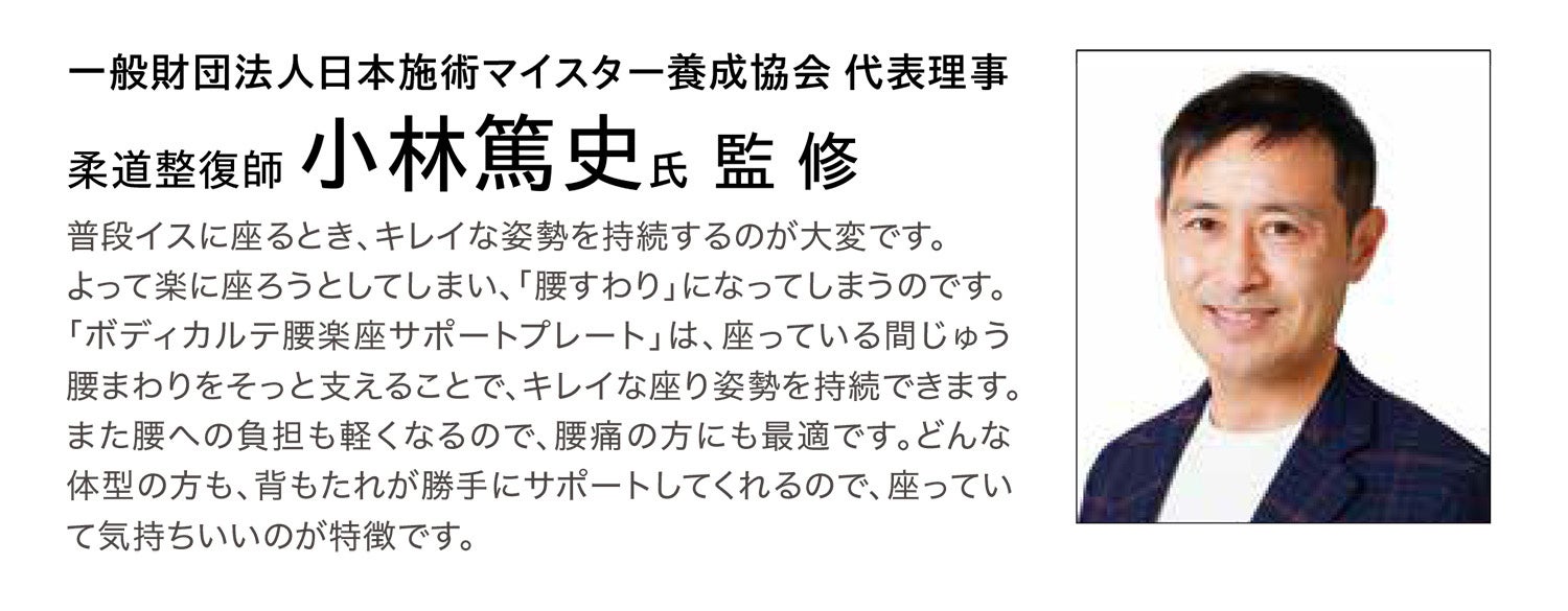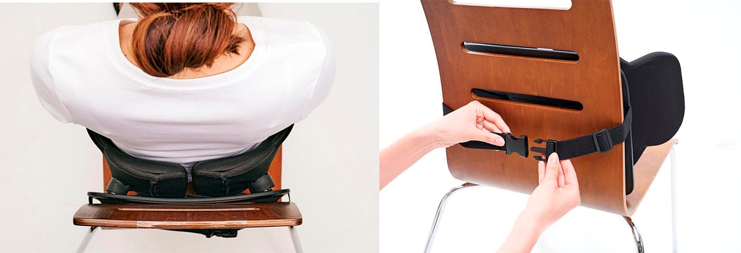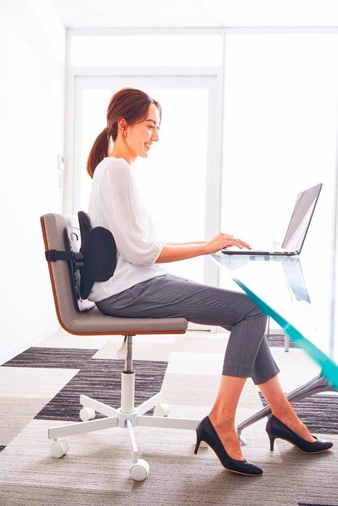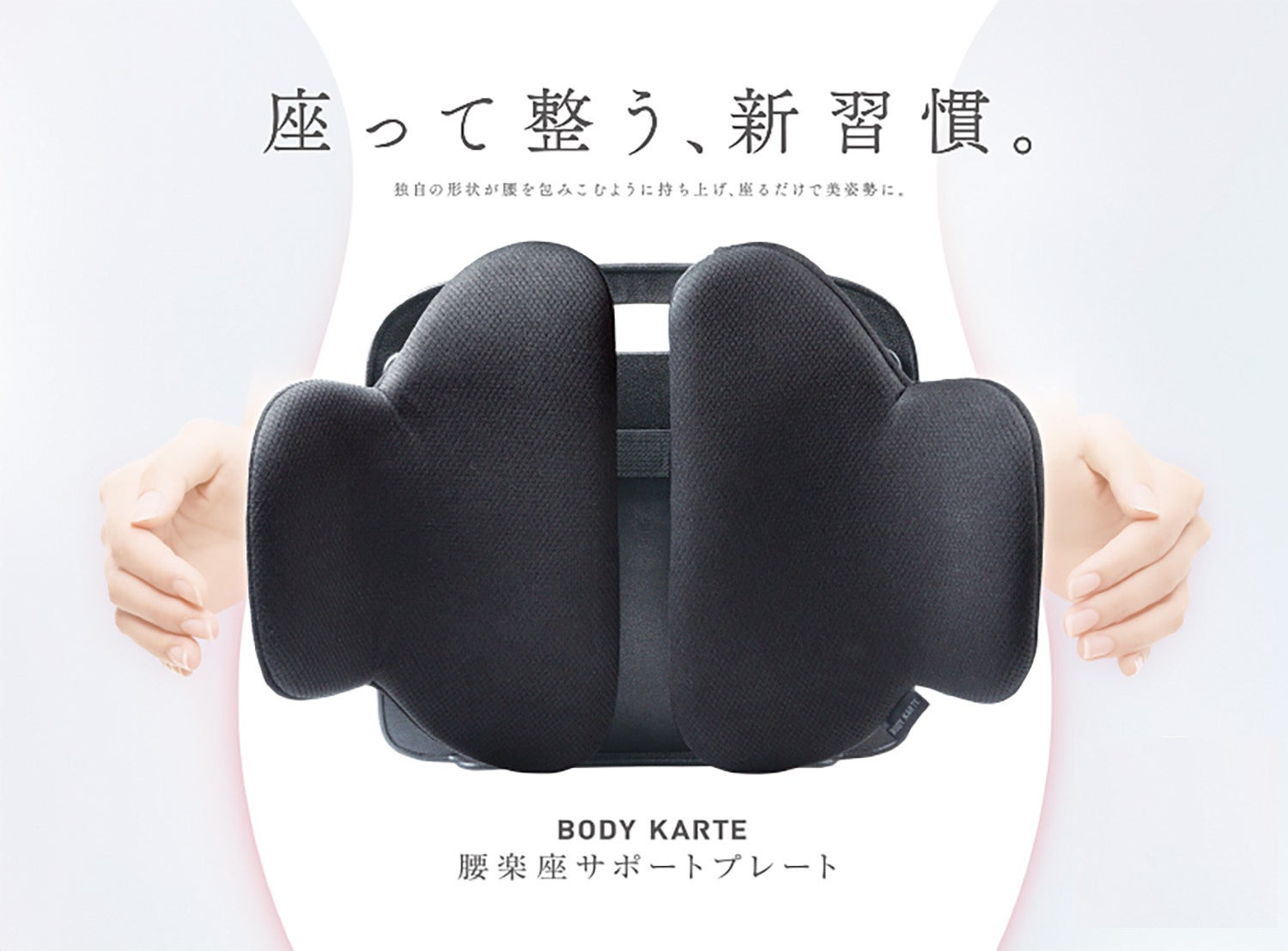 いつもの椅子に取り付けて座るだけ!包みこむように美姿勢へ。「ボディカルテ 腰楽座サポートプレート」を発売