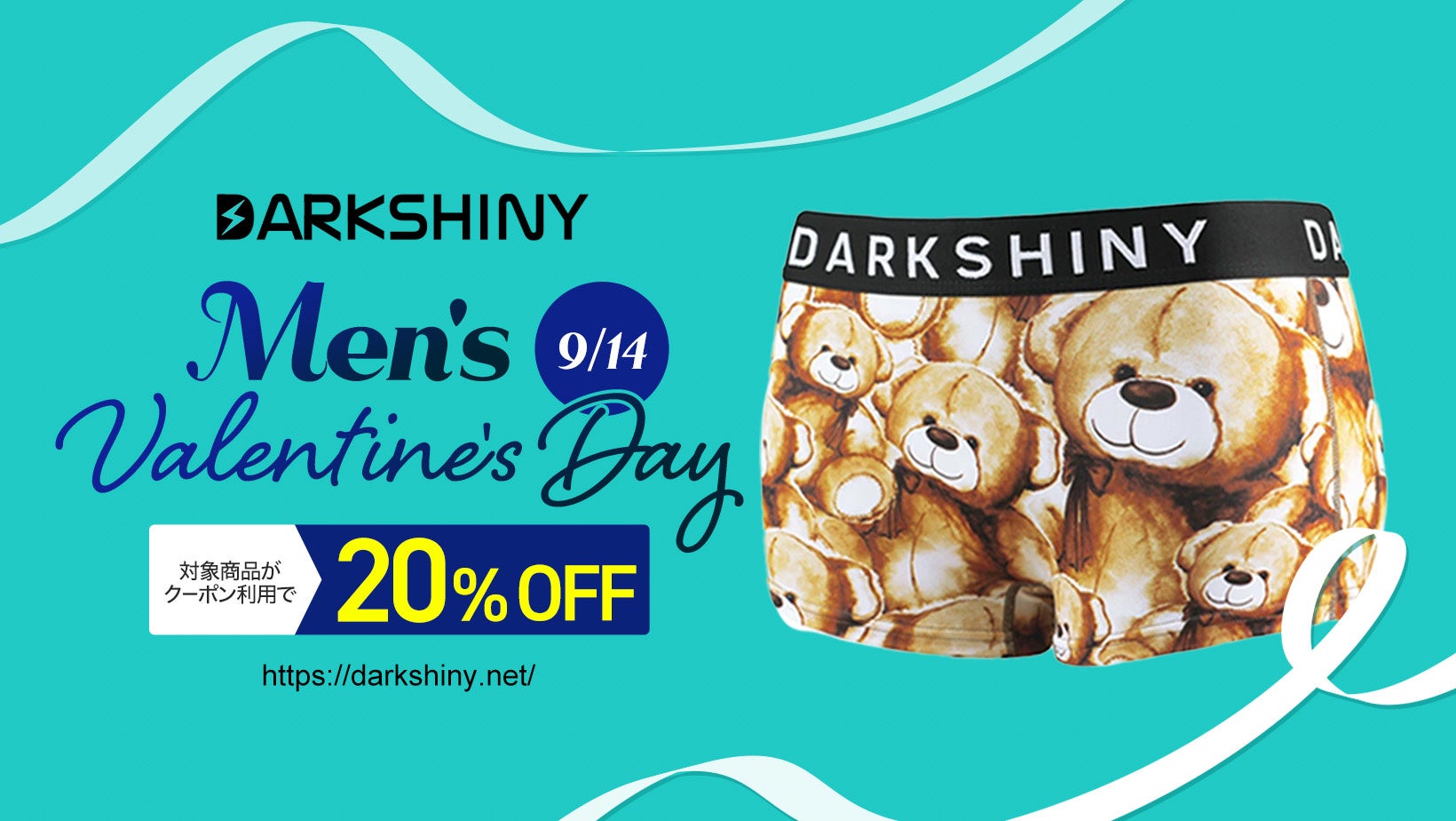 9月14日はメンズバレンタインデー!!DARK SHINYのユニセックス・レディースボクサーパンツが20%OFFの特別クーポンを配布