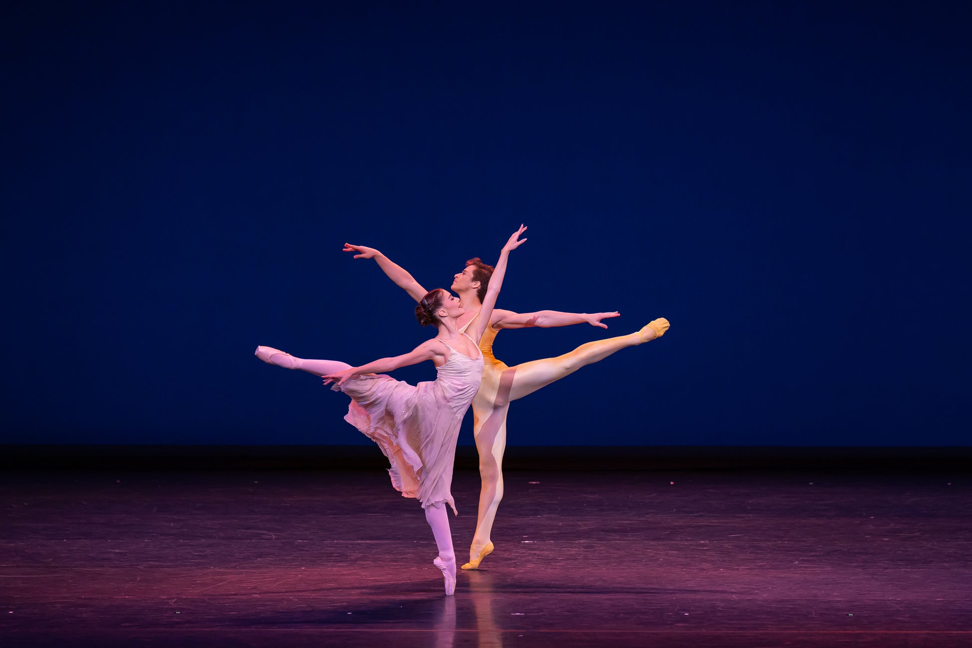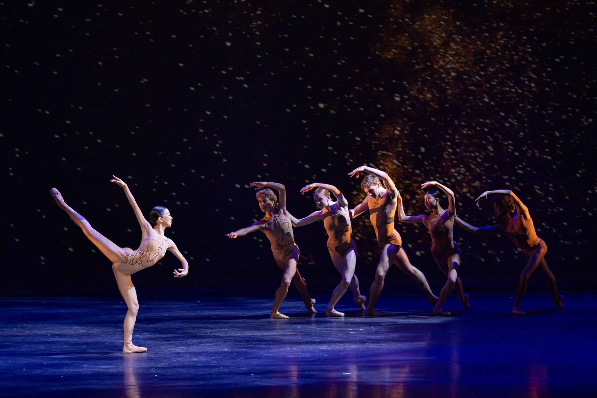 続く演目は世界各国の名門バレエ学校の生徒たちによる作品が並びます。熊川哲也、吉田都を輩出し、日本でも高い人気を誇るロイヤル・バレエ・スクールはアシュトンの名作『ラプソディ』よりパ・ド・ドゥを披露し、英国バレエの気品と高度な技術で、洗練された美しさを一層際立たせました。プリンセス・グレース・アカデミーによる『セレスティアル・ダスト』は、今年6月に大阪・関西万博「モナコ・ナショナルデー」で上演された話題作。穏やかなピアノの旋律にのせ、6名の生徒たちがすらりと伸びる手足で繊細な流れを絶え間なく紡ぎ出し、幻想的な世界で観客を魅了しました。