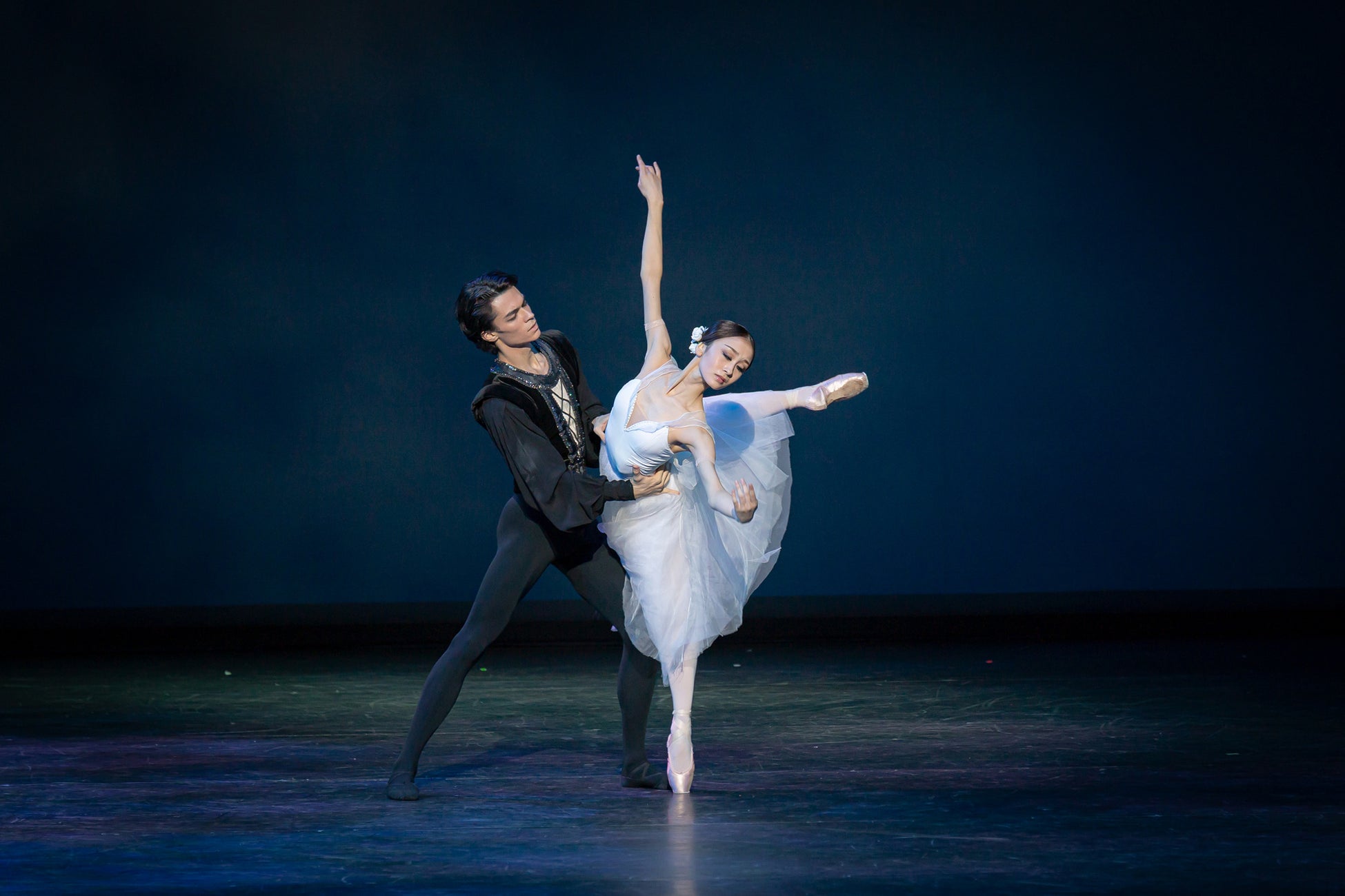 そしてYAGPから羽ばたき、名門マリインスキー劇場で活躍中の永久メイが演じる『ジゼル』。大きく可憐な腕の動きと軽やかな足さばきは、まさにウィリそのもの。初共演となるボリショイ・バレエのプリンシパル、ドミトリー・スミレフスキーは驚異的な高さのアントルシャ・シスを披露し、ロシア・バレエの真髄を印象づけました。本演目では3校の生徒たちも精霊役を踊り、まさに公演の副題の通り、今日のスターと未来のスターが舞台を共にする演目となりました。
