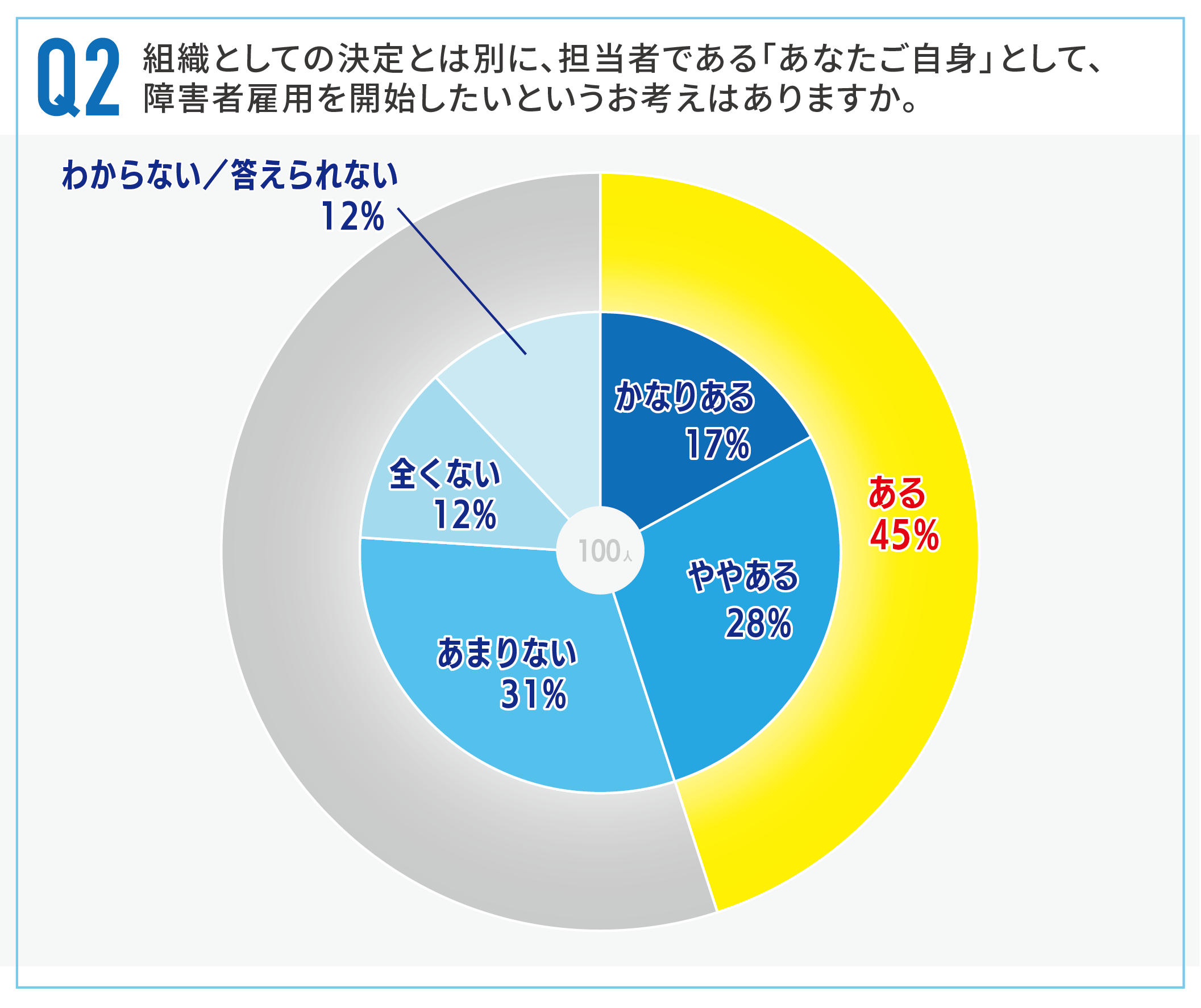 【調査対象】法定雇用率の対象企業(従業員40名以上)で、現在障害者を1人も雇用していない企業の経営者・人事責任者100名
