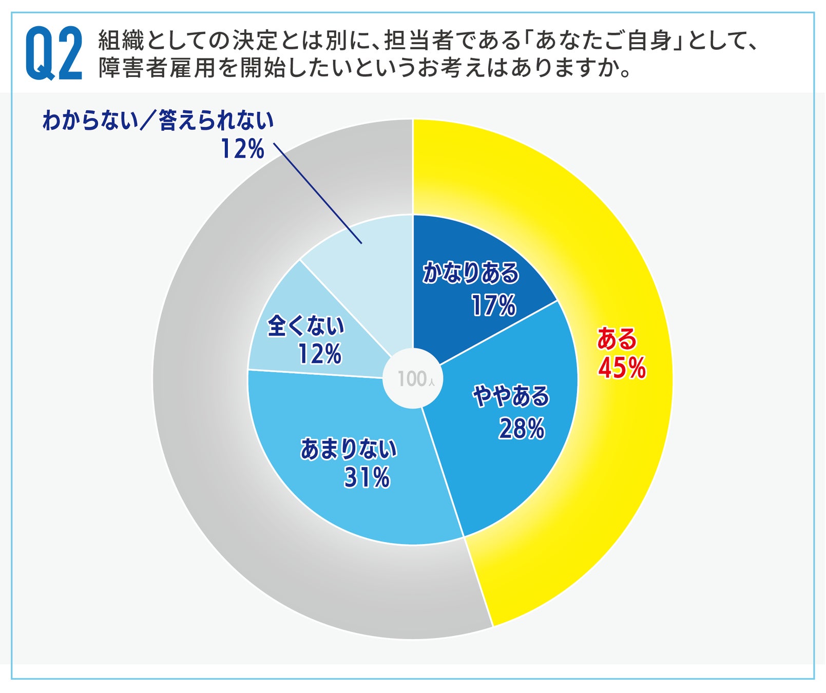 障害者就業支援を通じて“誰もが自分らしく生きる社会”を目指す株式会社スタートライン(本社:東京都三鷹市、代表取締役社長:西村賢治)は、法定雇用率の適用対象でありながら現在「障害者雇用0人」の企業に勤務する人事担当者100名を対象に、「障害者雇用の開始に関する実態調査」を実施しました。