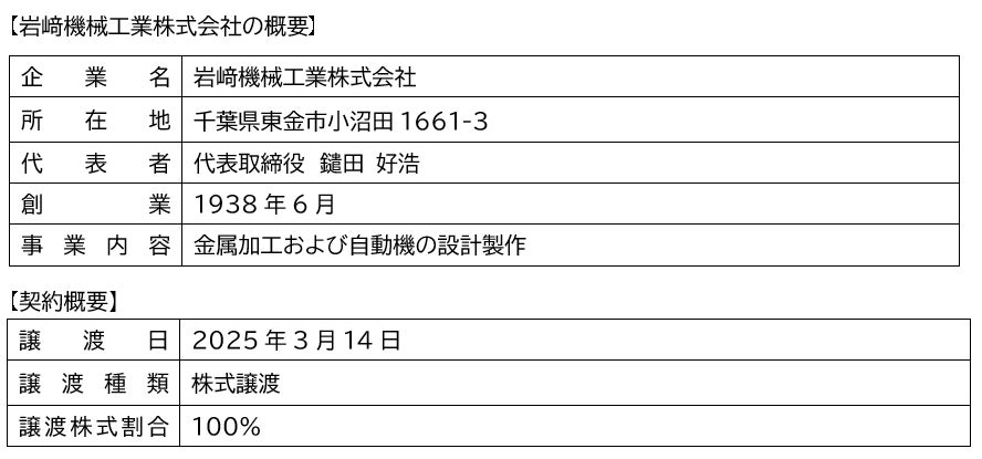 「ちばエンゲージメント1号投資事業有限責任組合」による岩﨑機械工業株式会社の株式譲受について