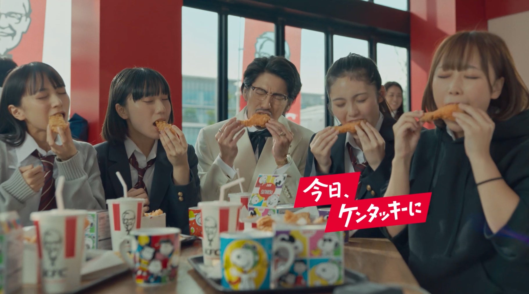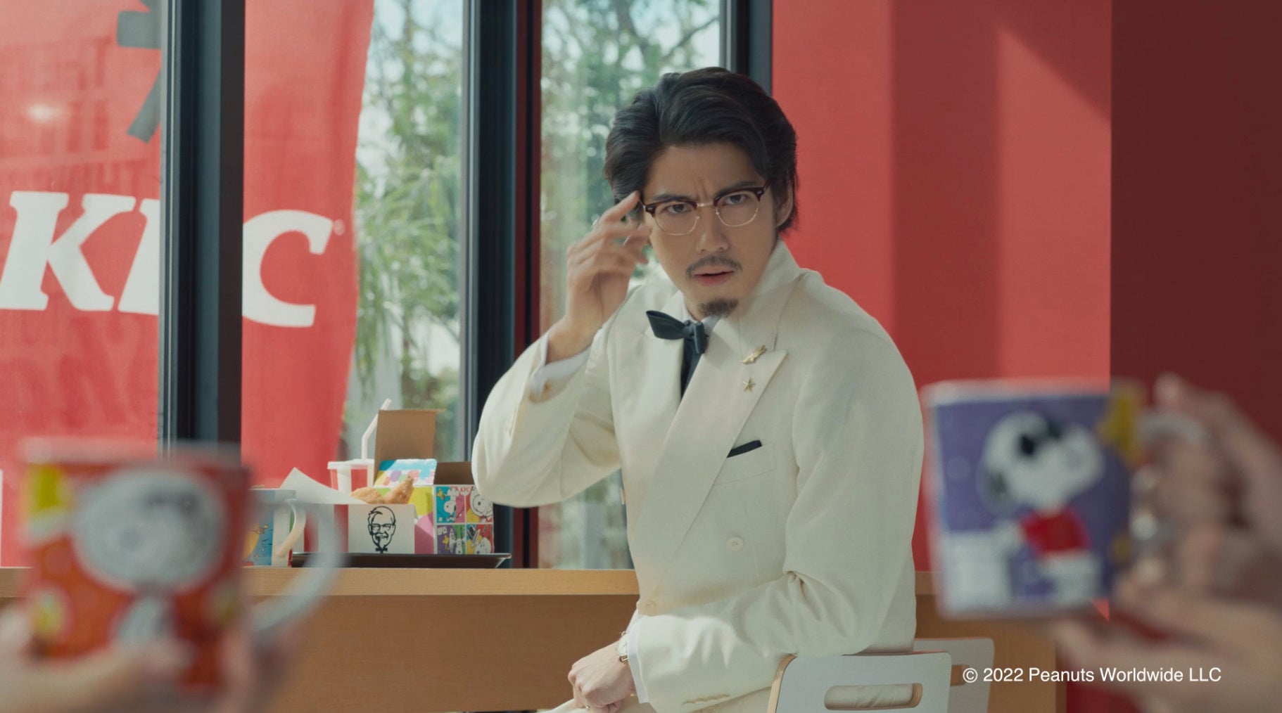 今年もKFC限定デザインのスヌーピー マグが登場します! カーネル・サンダースに扮した賀来賢人さんがマグの可愛さに見とれていると、背後から女子高生たちの声。振り返ると「宇宙飛行士じゃん!」「かわいい~!」とマグを披露し合っています。レアマグの出現にさらに盛り上がる彼女たちを前に、賀来さんも思わず…!? ついつい友達や家族とマグを全種類集めたくなる新CMです。カーネル・サンダースに扮した賀来さんと、様々な格好に“変装”したスヌーピーの共演をお楽しみください!