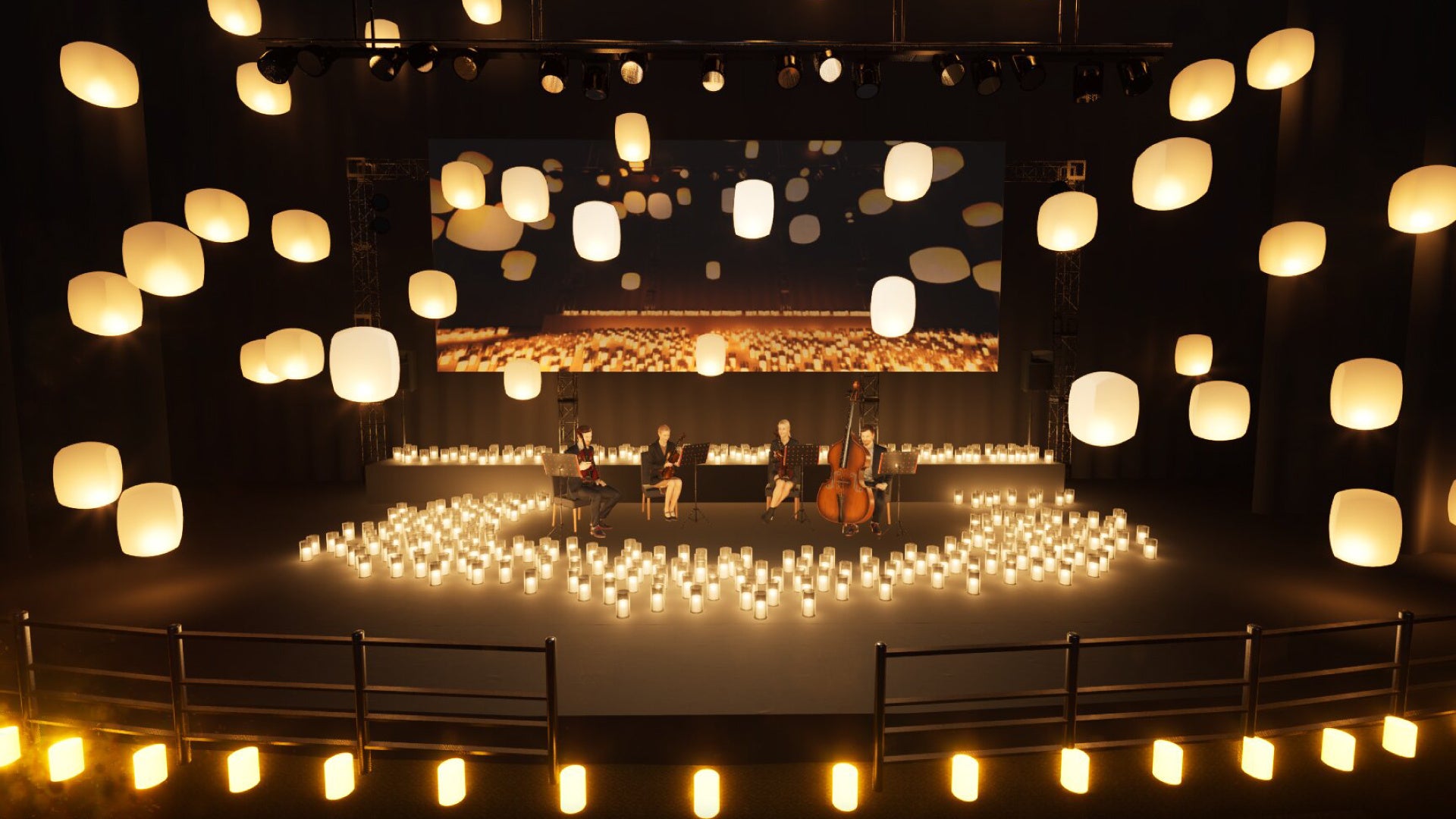 100基のランタンと1000個のキャンドルに包まれた美しく輝くステージで弦楽器の生演奏をお楽しみいただけます。