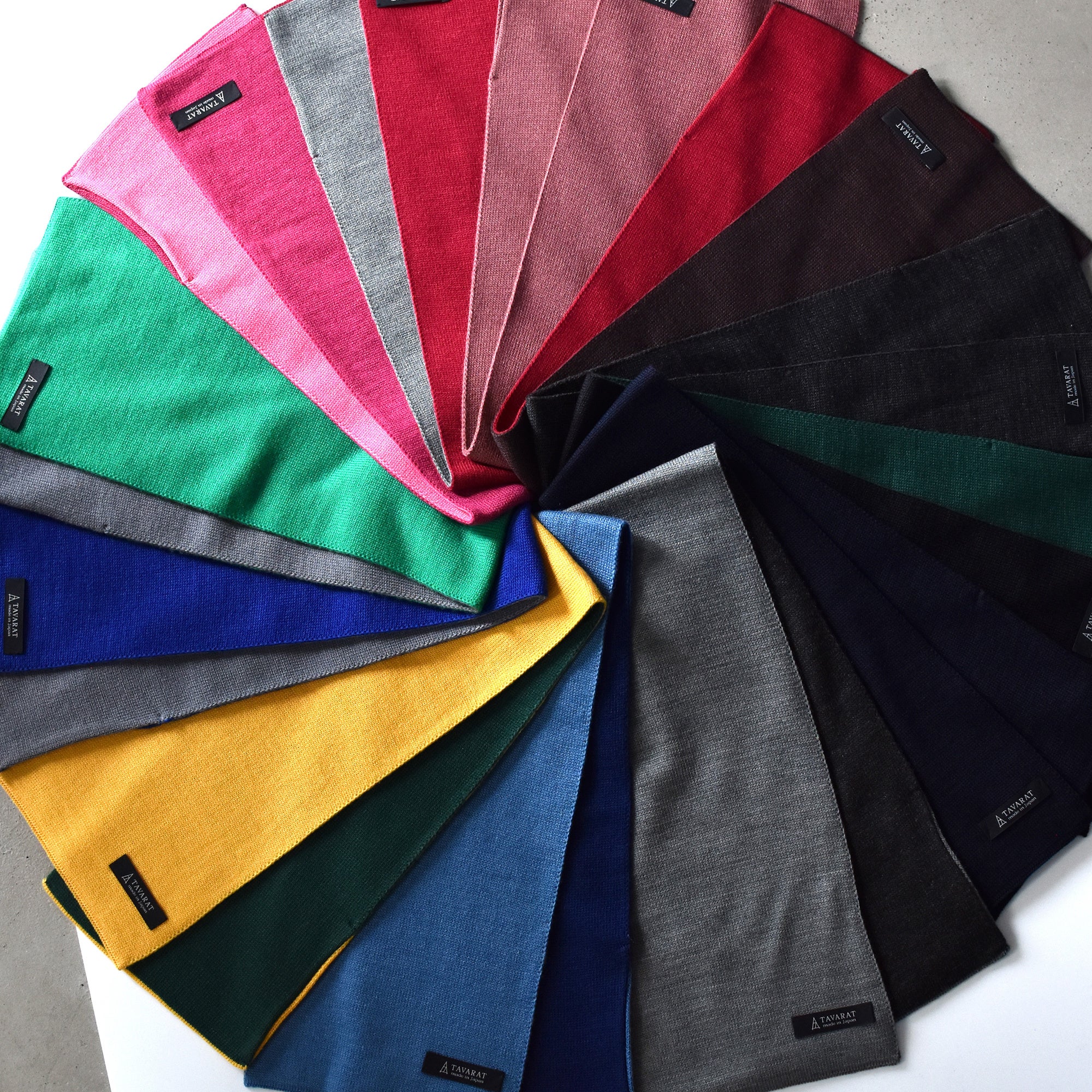 そんな気軽さが魅力的なTAVARATの定番ミニマフラーです。また折りたたんだ時もコンパクトなので、