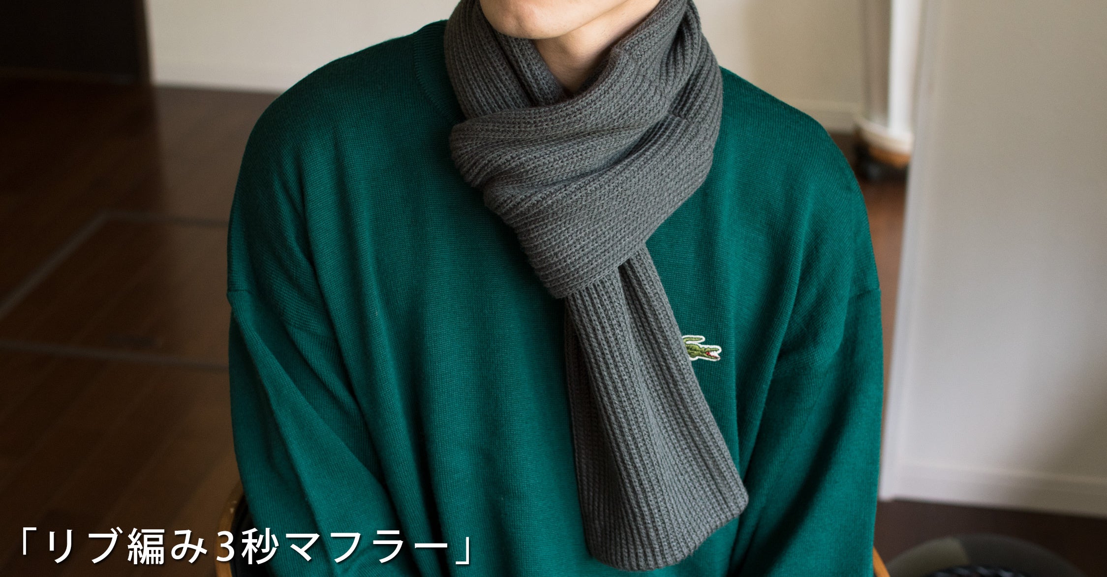 「リブ編み3秒マフラー」には新たにグレーが加わり、全6色展開となりました。シンプルな単色のグレーは濃い色とも淡い色ともバランスの取りやすいカラーです。