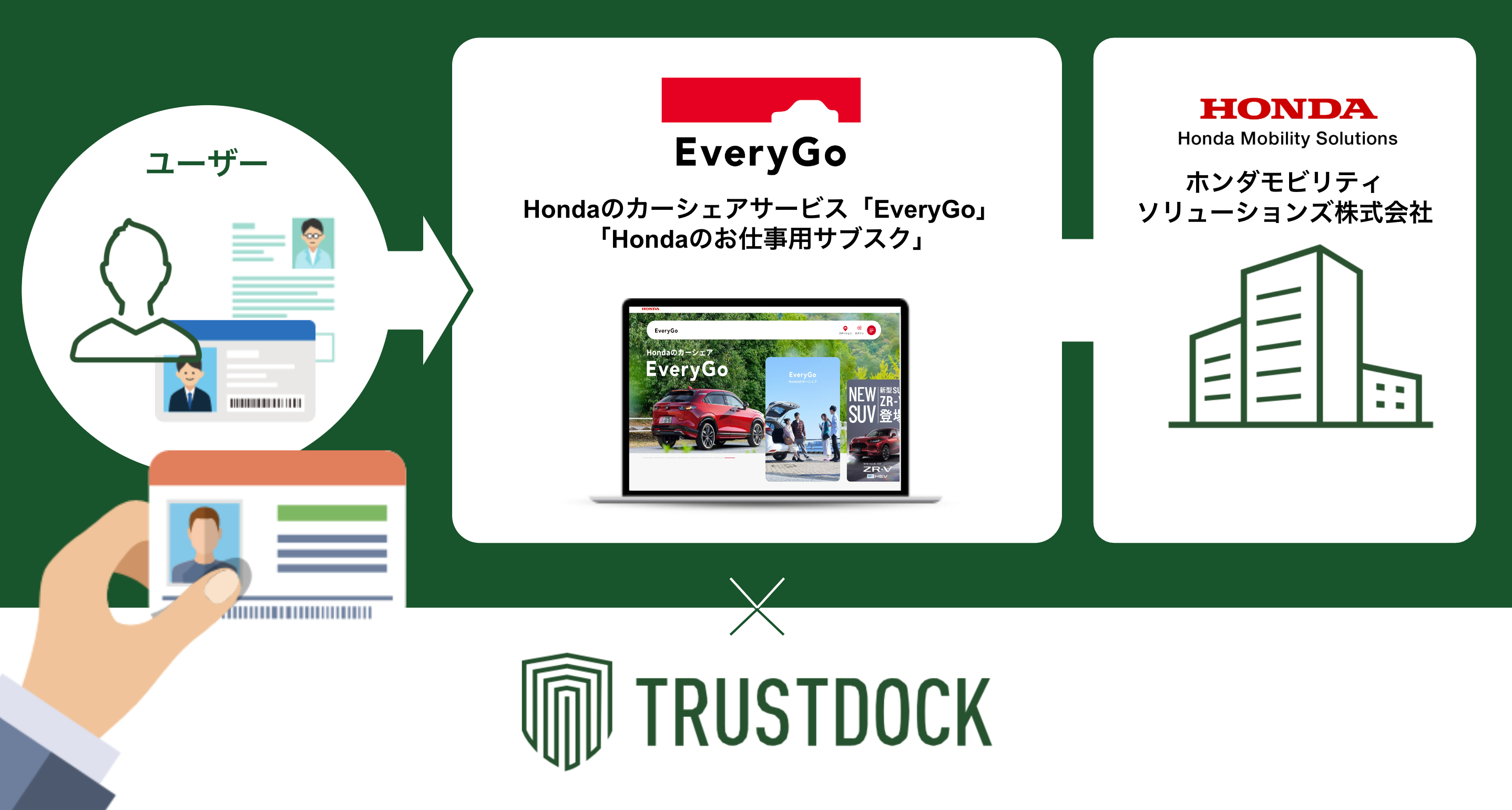 Hondaのカーシェアサービス「EveryGo」と「Hondaのお仕事用サブスク」に、eKYC本人確認サービス「TRUSTDOCK」を導入実施