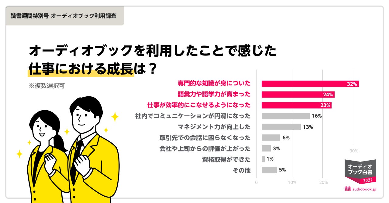 ビジネスパーソンには“耳”を使った新読書スタイルがおすすめ! オーディオブックの利用で3人に2人が仕事で成長を実感 <オーディオブック白書2022【読書週間特別号】>