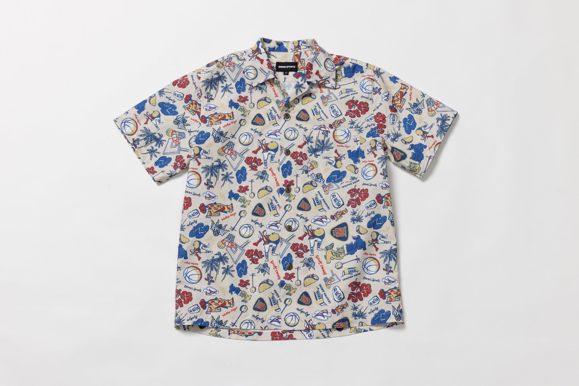 オリジナルファッションアイテムは、"アメリカがもっとも良かった頃のスタイル"を提案するレーベル〈BEAMS PLUS〉のディレクターである溝端秀基が企画に携わり、試合観戦にはもちろん、デイリーにも活躍するアイテム群で、かりゆしウェアを彷彿とさせるシャツや琉球ゴールデンキングスのプレーヤーを描き下ろしたイラストのプリントTシャツ、応援に欠かせないマフラータオルなど全9型をラインナップします。