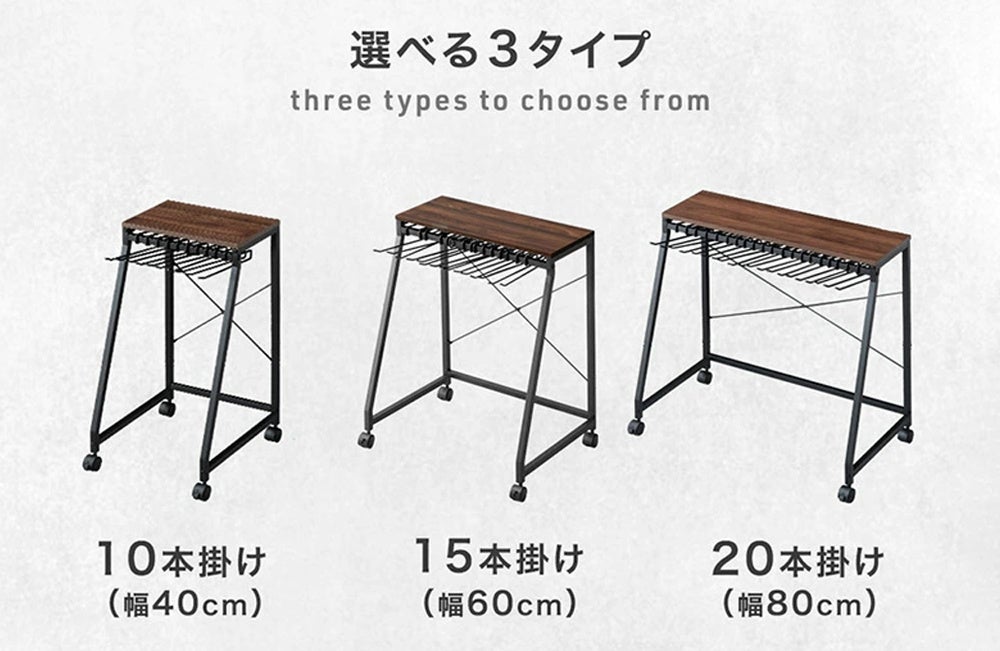 10本掛け:幅42×奥行44×高さ75cm 15本掛け:幅62×奥行44×高さ75cm 20本掛け:幅82×奥行44×高さ75cm |