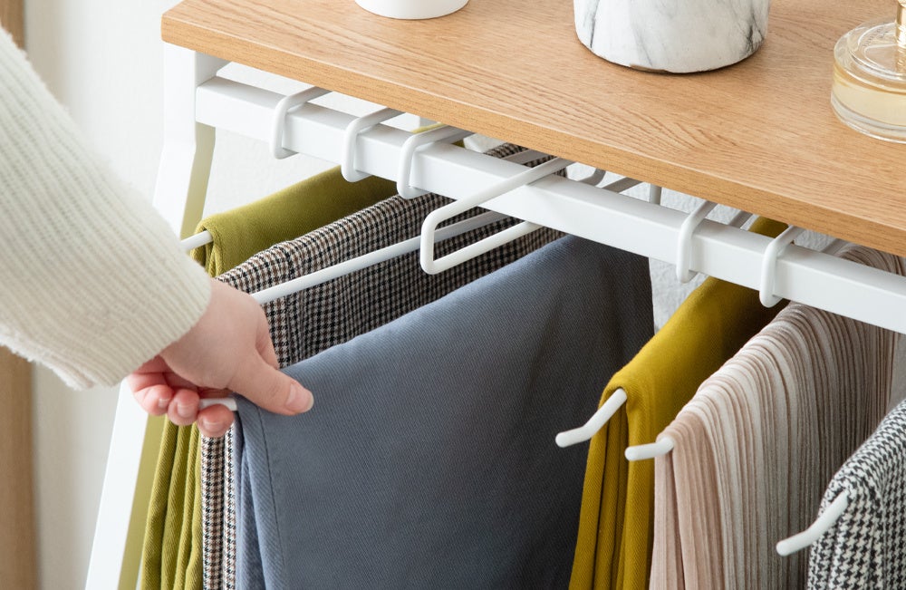 新開発のスラックスハンガーラックが、さらに進化!ズボン類の収納をノンストレス+スマートに実現