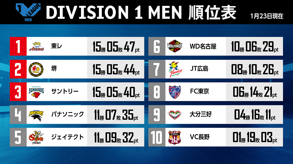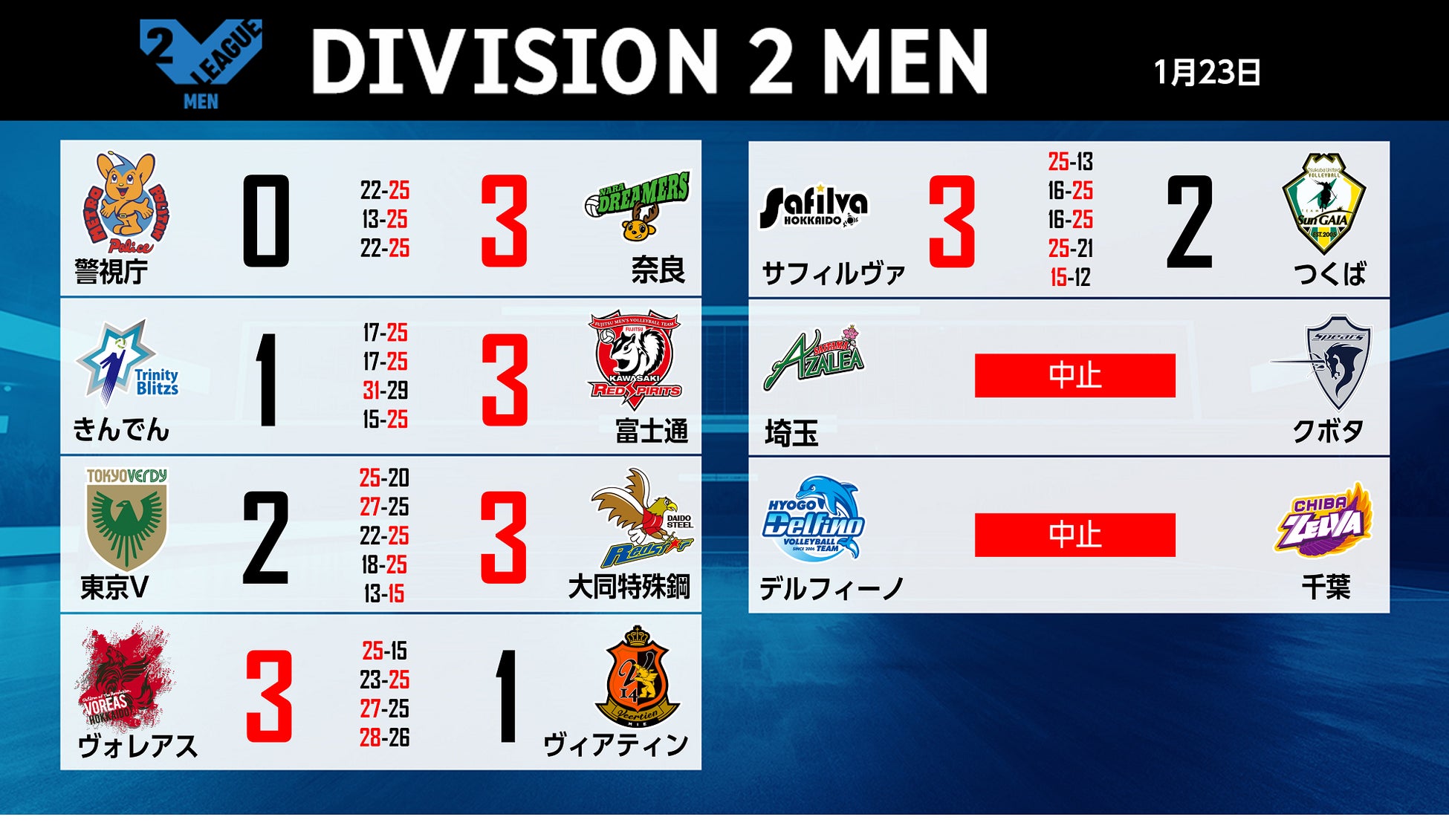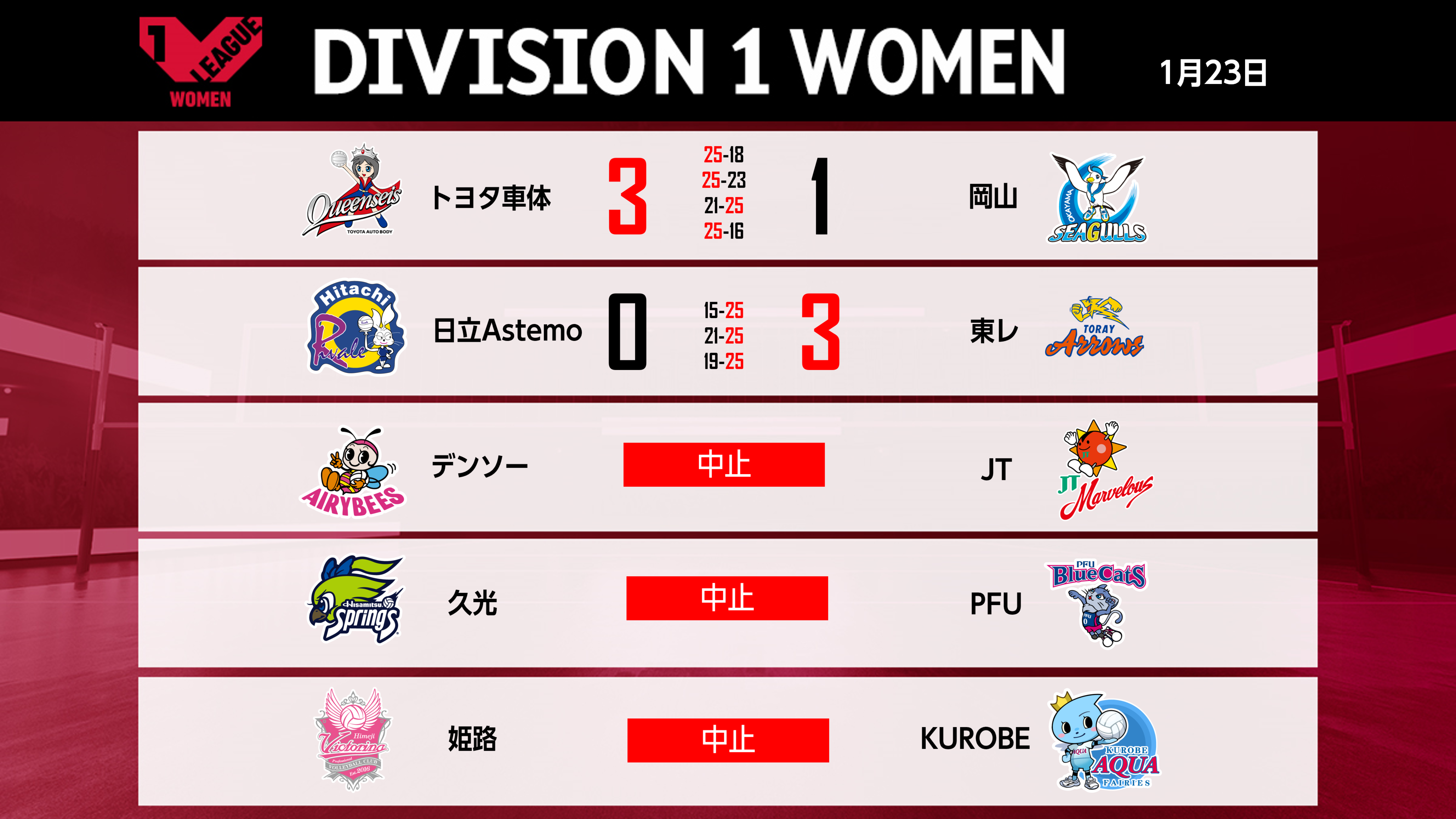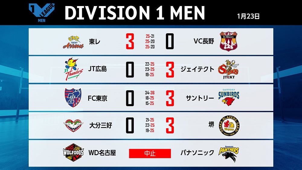 バレーボール国内最高峰リーグ V.LEAGUE【1月23日の試合結果】