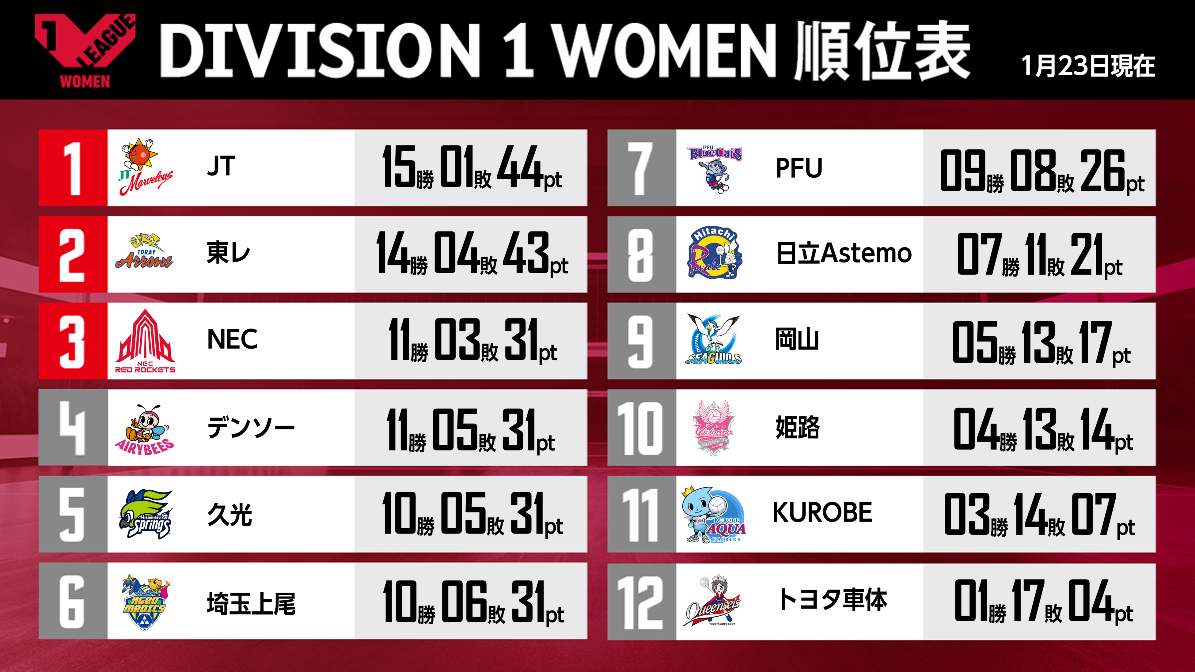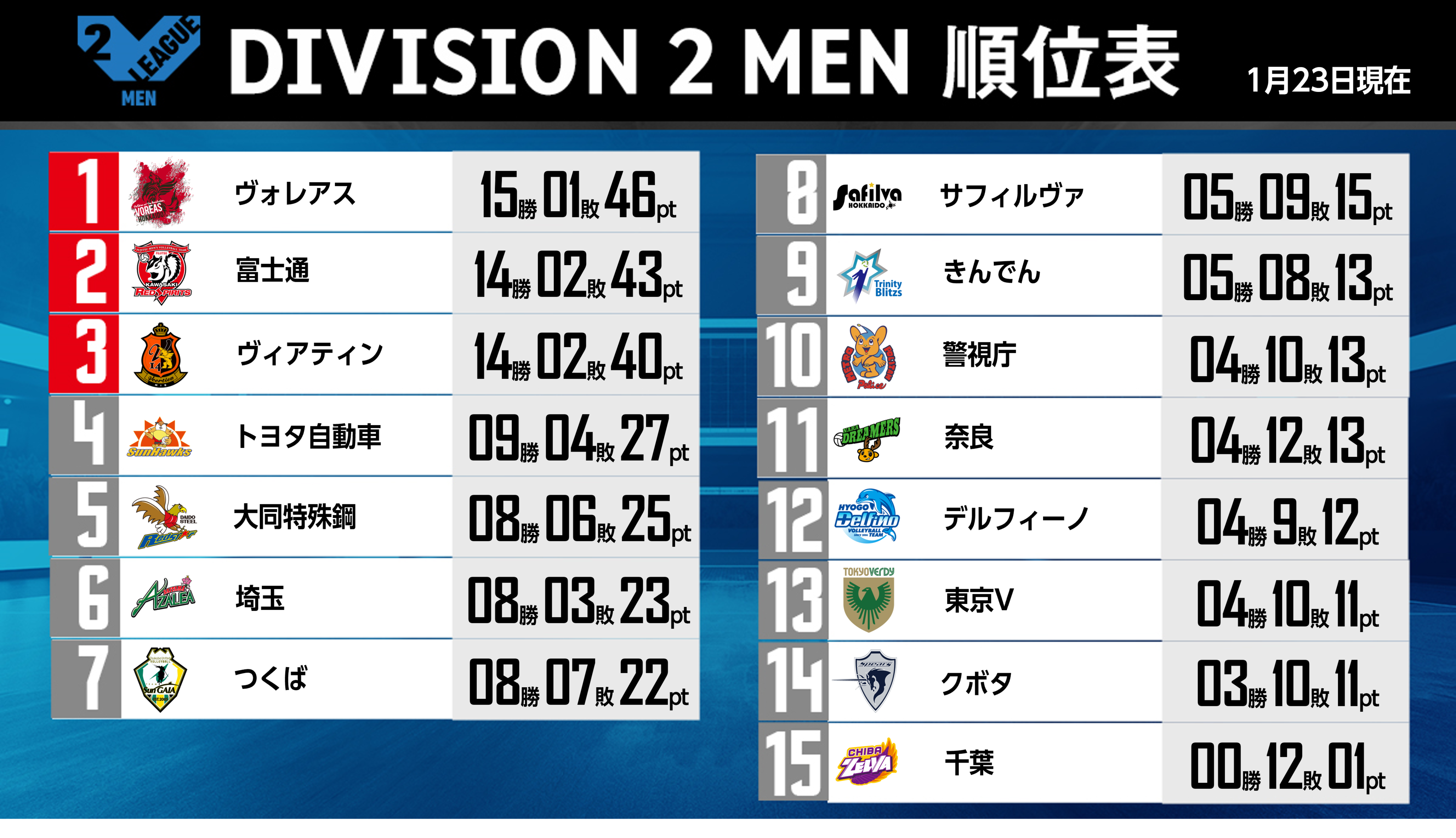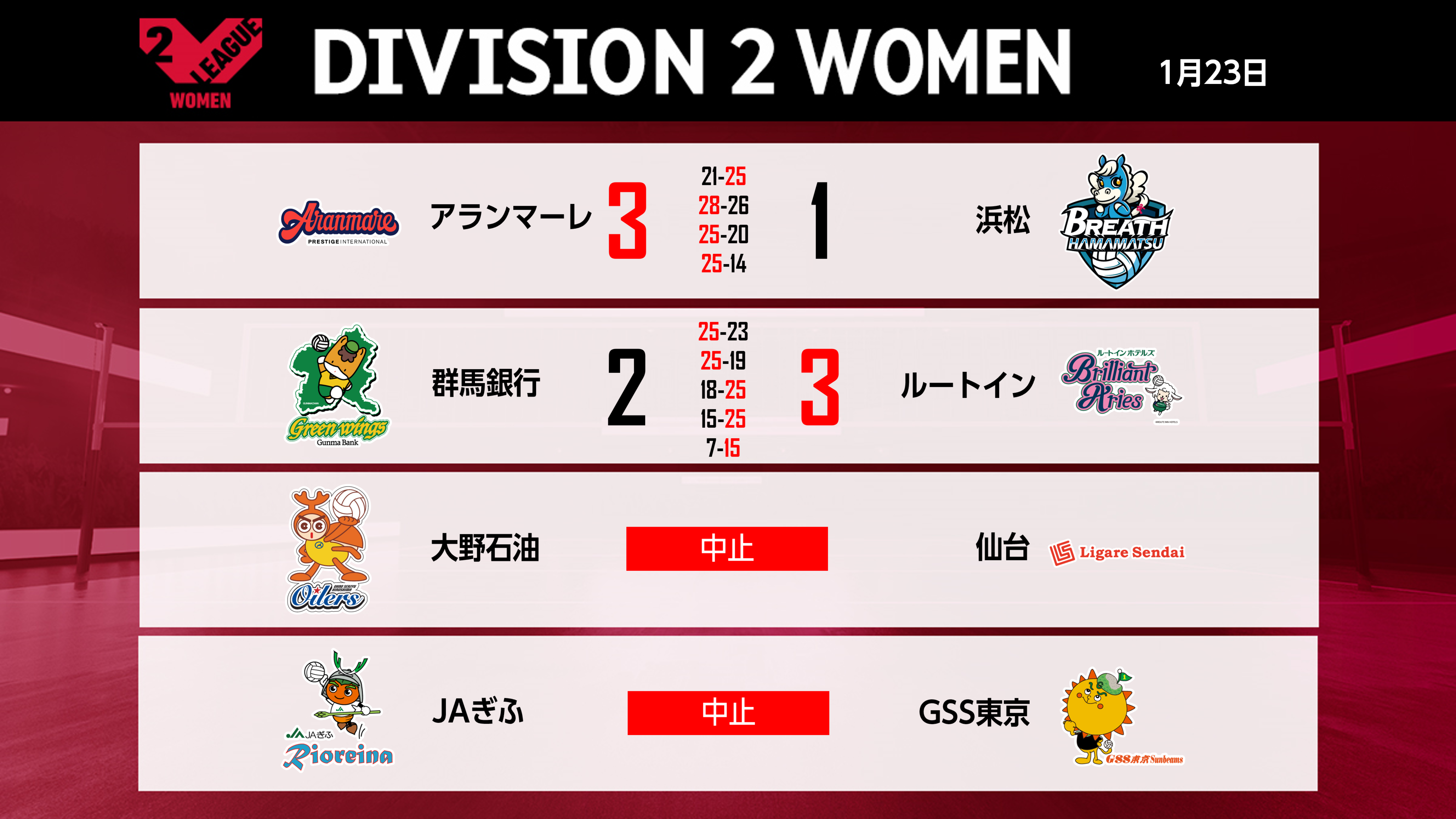 バレーボール国内最高峰リーグ V.LEAGUE【1月23日の試合結果】