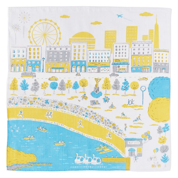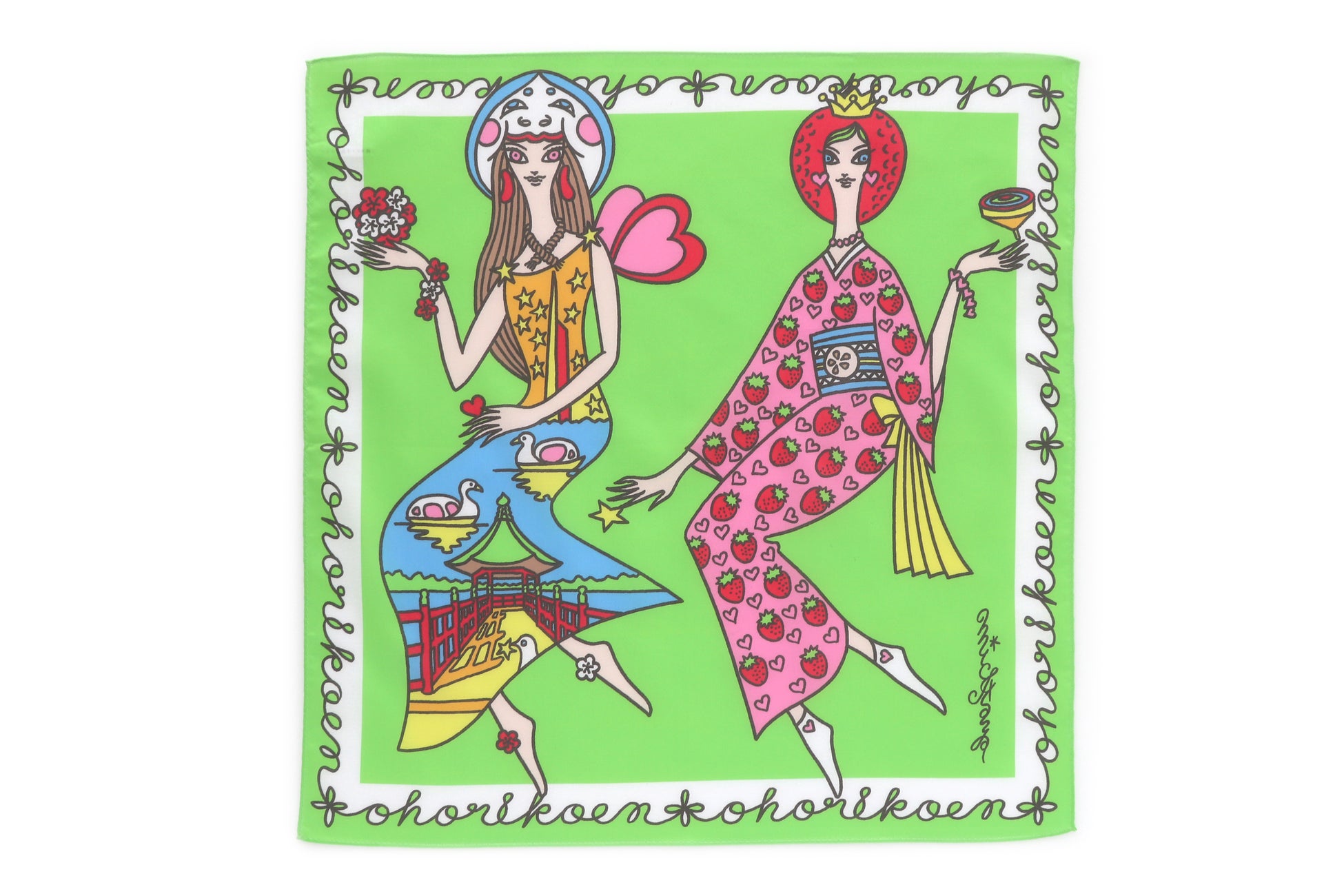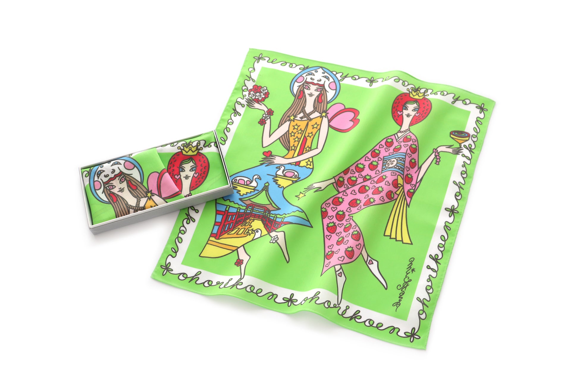 ブランド創設以来、数々のハンカチーフのデザインを手掛けているビジュアルアーティスト、ミック・イタヤ氏による描きおろしのハンカチーフ。大濠公園に浮かぶスワンをはじめ、梅ヶ枝餅やいちご、博多こまなど、福岡にまつわるものをイメージしてデザインしました。福岡を愛する地元の方々や、旅の思い出としてお土産にもおすすめです。