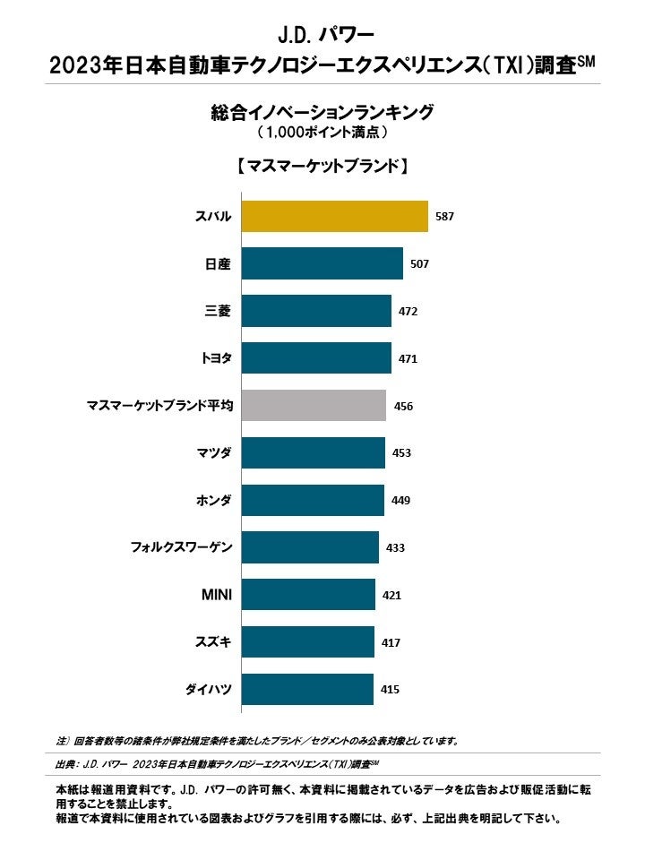 J.D. パワー 2023年 日本自動車テクノロジーエクスペリエンス調査℠、No.1ブランドを発表