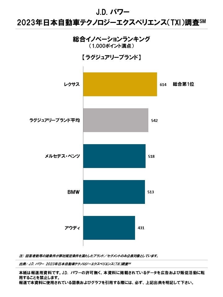 ブランド別総合イノベーションランキングはレクサスが初の1位