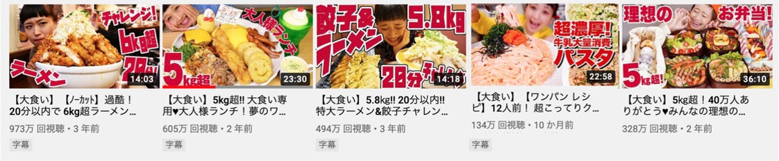 YouTubeチャンネル実績「ロシアン佐藤のおなかがすいたらMONSTER!」(一部抜粋)