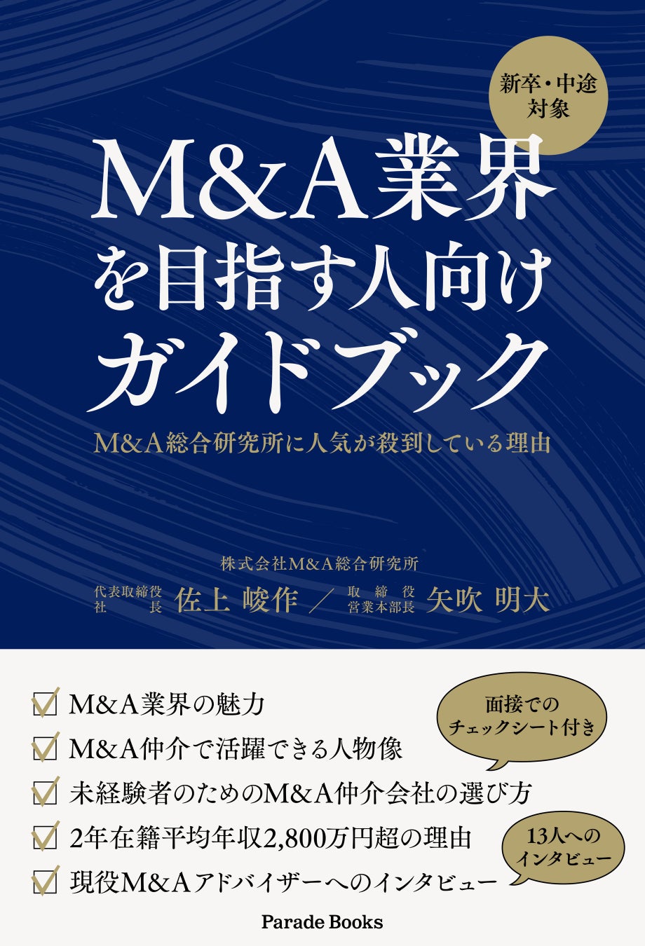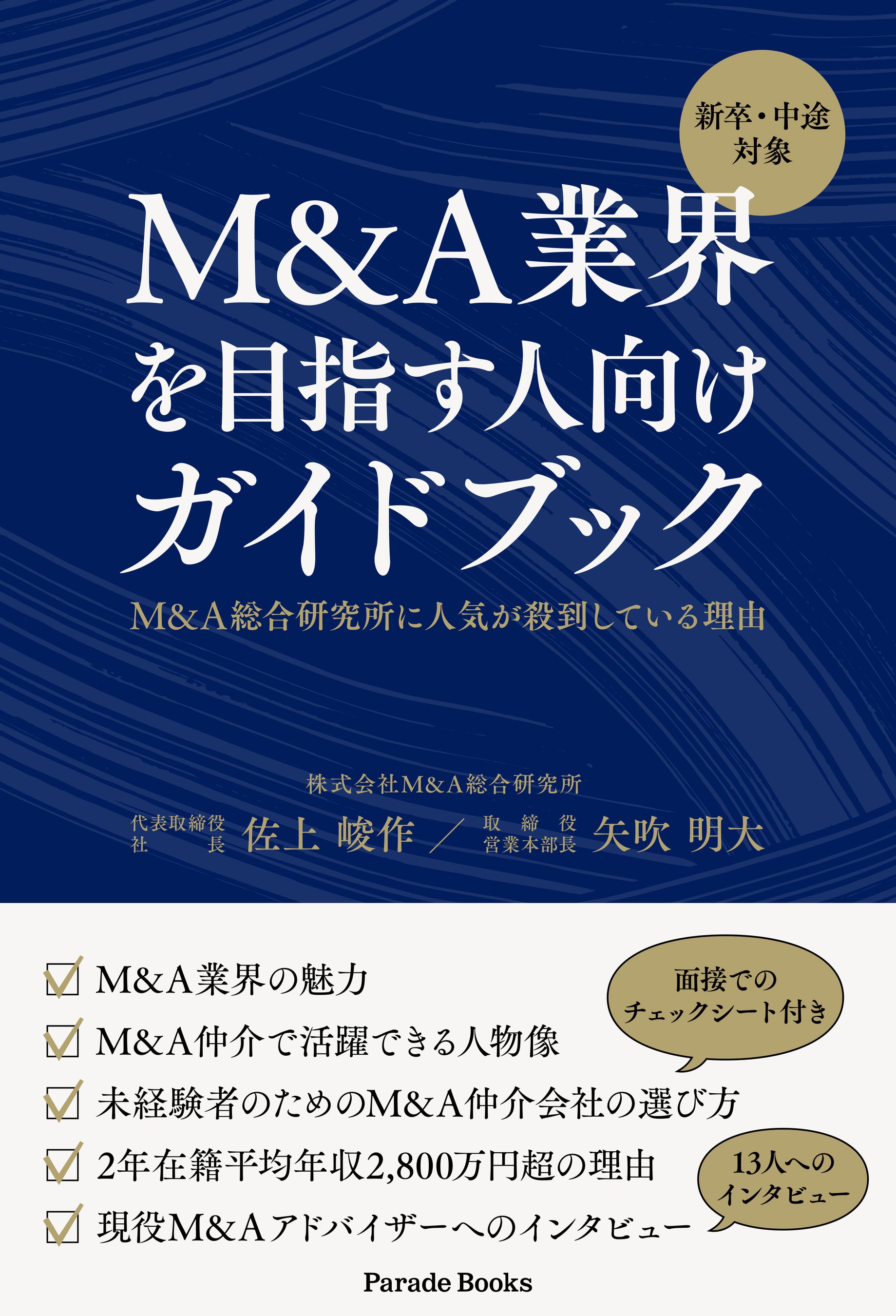 パレードブックスは、2023年3月4日(土)に『新卒・中途対象 M&A業界を目指す人向けガイドブック M&A総合研究所に人気が殺到している理由』(著者:佐上峻作、矢吹明大)を発売いたします。紙媒体はアマゾン限定販売、電子媒体は各電子書籍ストアにてお求めいただけます。