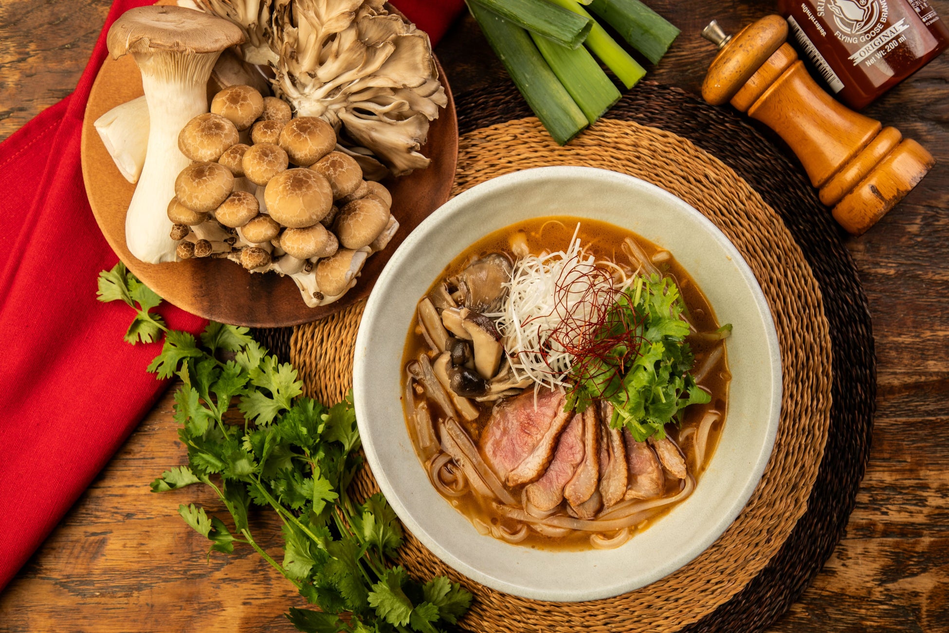 国産米麺のフォー専門店が贈る、旬の一杯。鴨の旨みときのこの香り、味噌のコクが広がる期間限定メニューです。