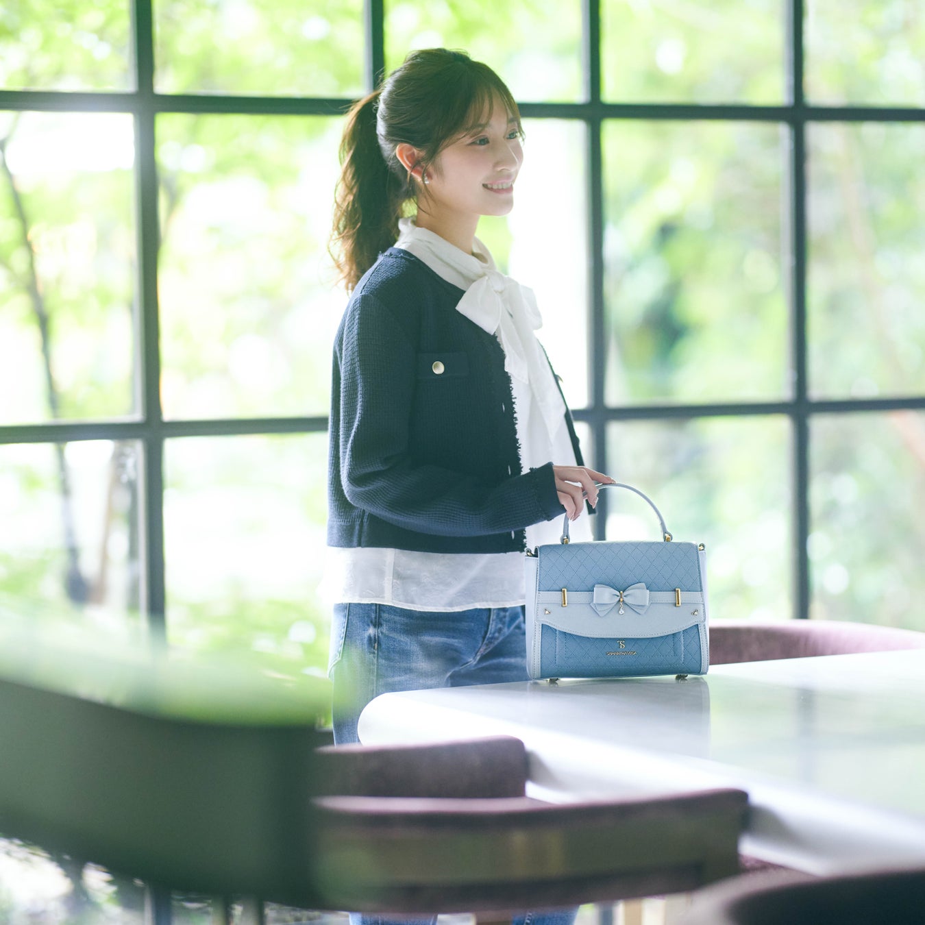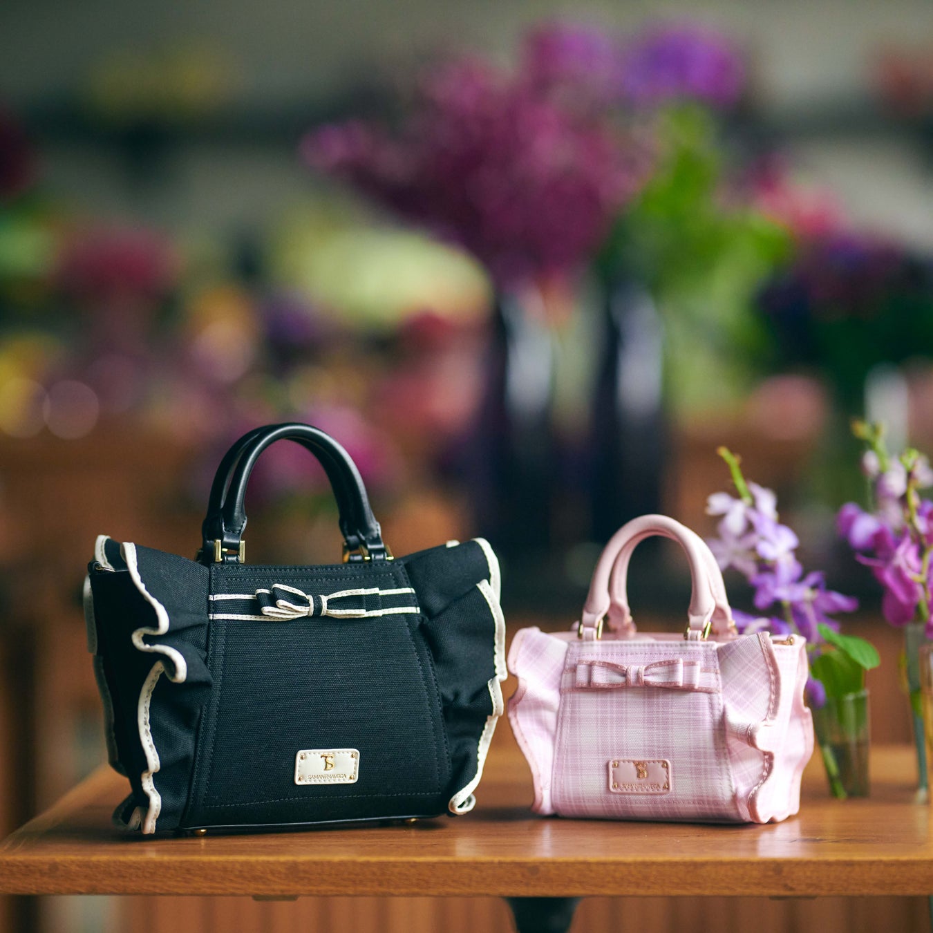 リボンフリルハンドバッグは、チェック柄だけでなく無地のデザインもラインナップ。