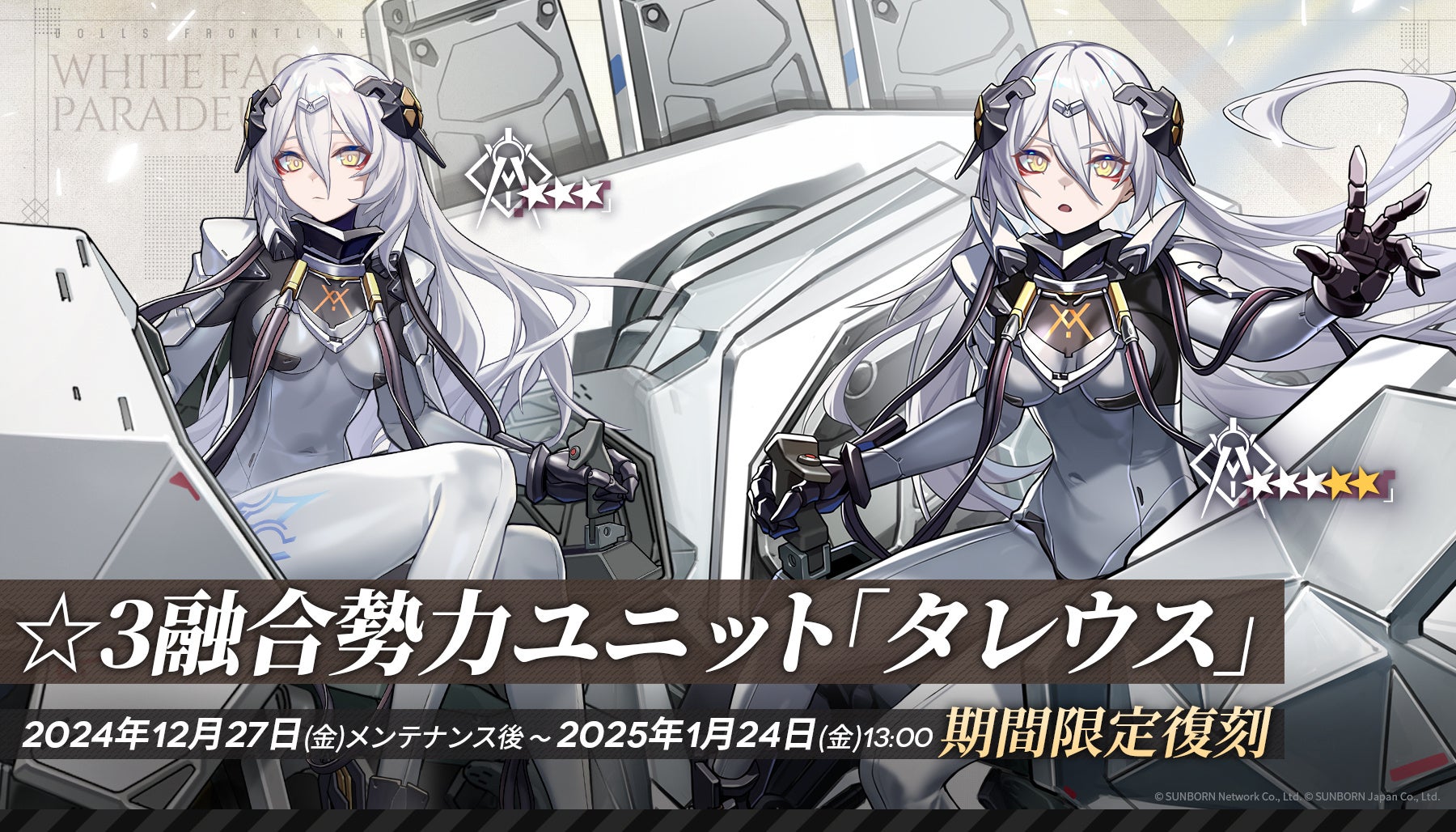 強力な融合勢力ユニットを捕獲できる「捕獲作戦」にて、「12月27日(金)メンテナンス後」より過去の捕獲区域『「未来号」F02車外廃土』が復刻し、★3ユニット「タレウス」の捕獲が可能になります。
