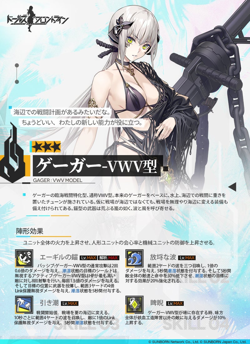 株式会社サンボーンジャパンは、スマホ向け戦略型シミュレーションゲーム『ドールズフロントライン(以下、「ドルフロ」)』において、強力な敵対勢力を捕獲できる「捕獲作戦」に新たな区域と★3ユニット「ゲーガー-VWV型」が登場することをお知らせいたします。さらに、近日開催予定のイベントなどについても合わせてお知らせいたします。