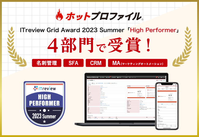 名刺管理・営業支援ツール「ホットプロファイル」、「ITreview Grid Award 2023 Summer」4部門で受賞