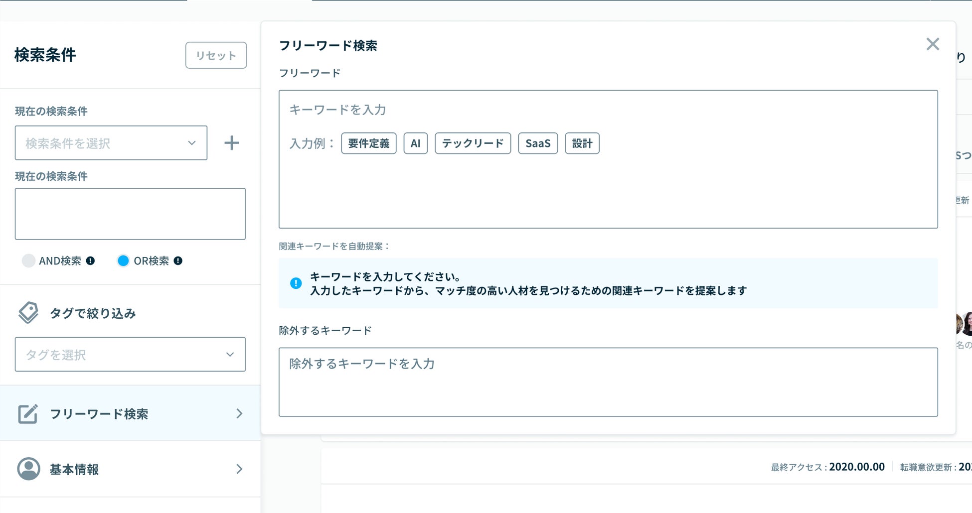 特定のキーワードを含む候補者を検索結果から除外できる新機能