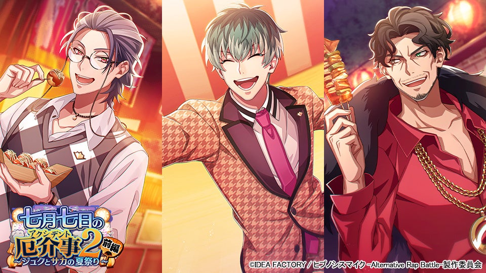 スマートフォン向けゲームアプリ『ヒプノシスマイク -Alternative Rap Battle-』にて、イベント「七月七日の厄介事2 前編~ジュクとサカの夏祭り~」を本日開始いたしました。