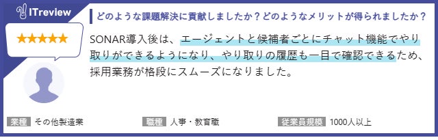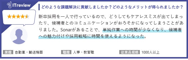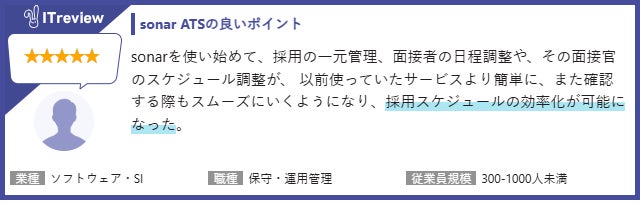 採用管理システム「sonar ATS」のレビュー紹介(抜粋)