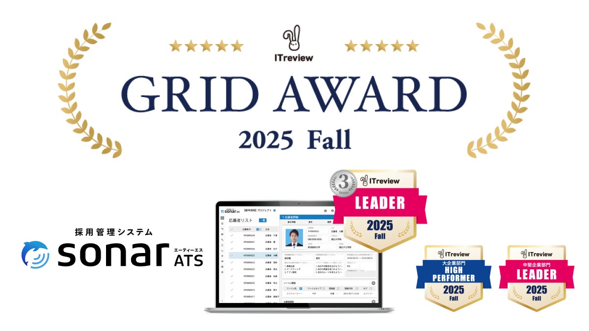 採用管理システムsonar ATS、ITreview Grid Award 2025 Fall で「Leader」「High Performer」を受賞