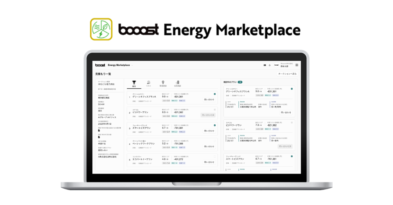 Booost、グループ連結での再エネ調達加速のために「コスト・環境価値・地域貢献」で再エネを統合評価する新機能「booost Energy Marketplace」の提供を開始