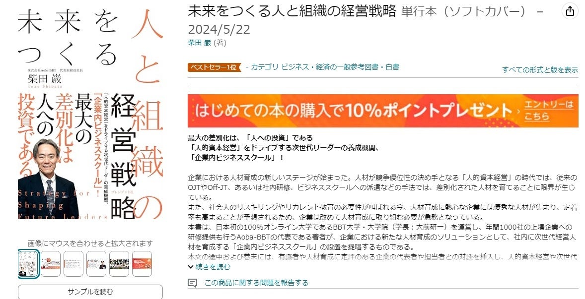Aoba-BBT社長、柴田巌の最新書籍『未来をつくる人と組織の経営戦略』発売初日にカテゴリー1位を獲得!