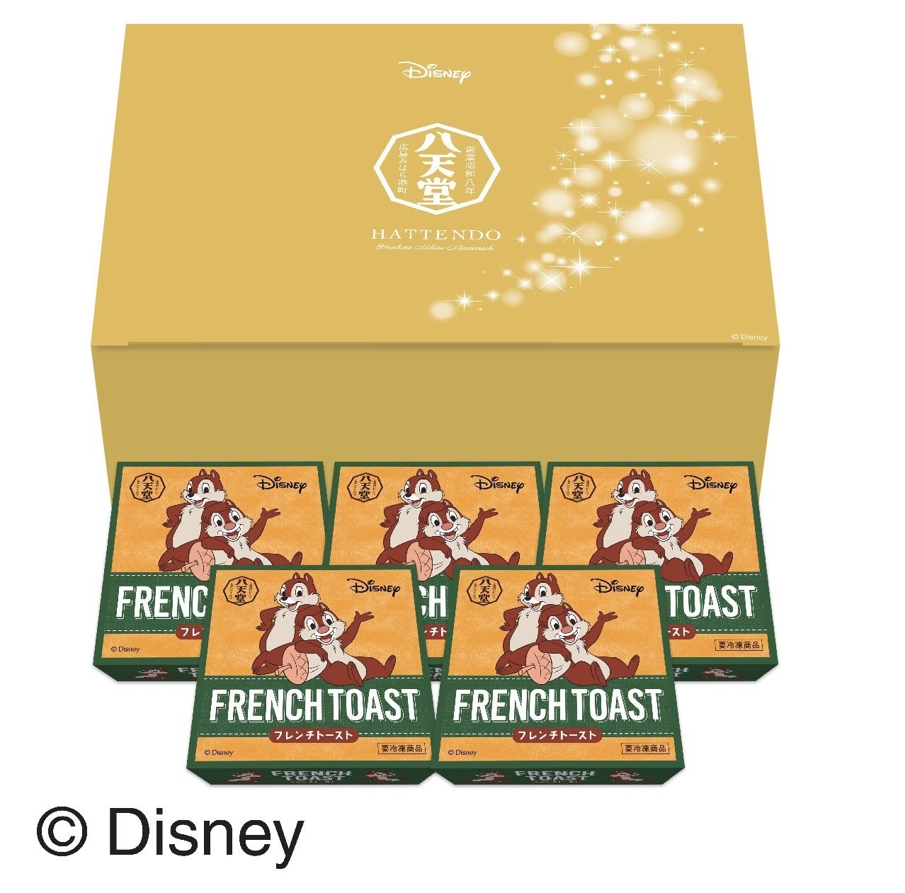 八天堂オンラインショップで展開するディズニースイーツパンコレクションに、オンラインショップの人気商品「フレンチトースト」が新たにラインアップ。いたずら好きの仲良し「チップ&デール」がデザインされたカワイイ箱にフレンチトーストを入れました。特別感あるギフトや、ご自宅でのおもてなしスイーツにもぴったりです。ディズニースイーツパンコレクション専用BOXでお届けします。