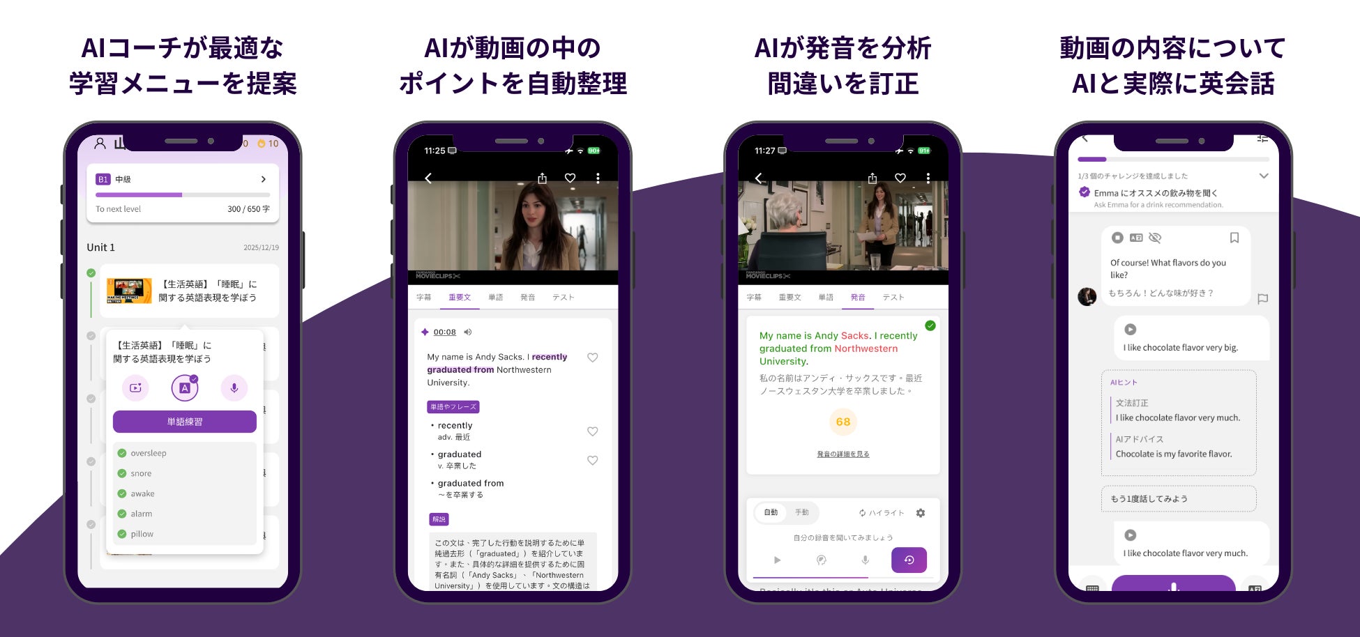 現在、VoiceTubeは世界で560万人以上に利用されており、日本でも50万人以上のユーザーを持つ英語学習サービスへと成長しています。AI発音分析やAIコーチなどの技術を活用し、動画で英語を理解するだけでなく、発音やスピーキングの練習を通じて、実際に使える英語力の習得をサポートしています。