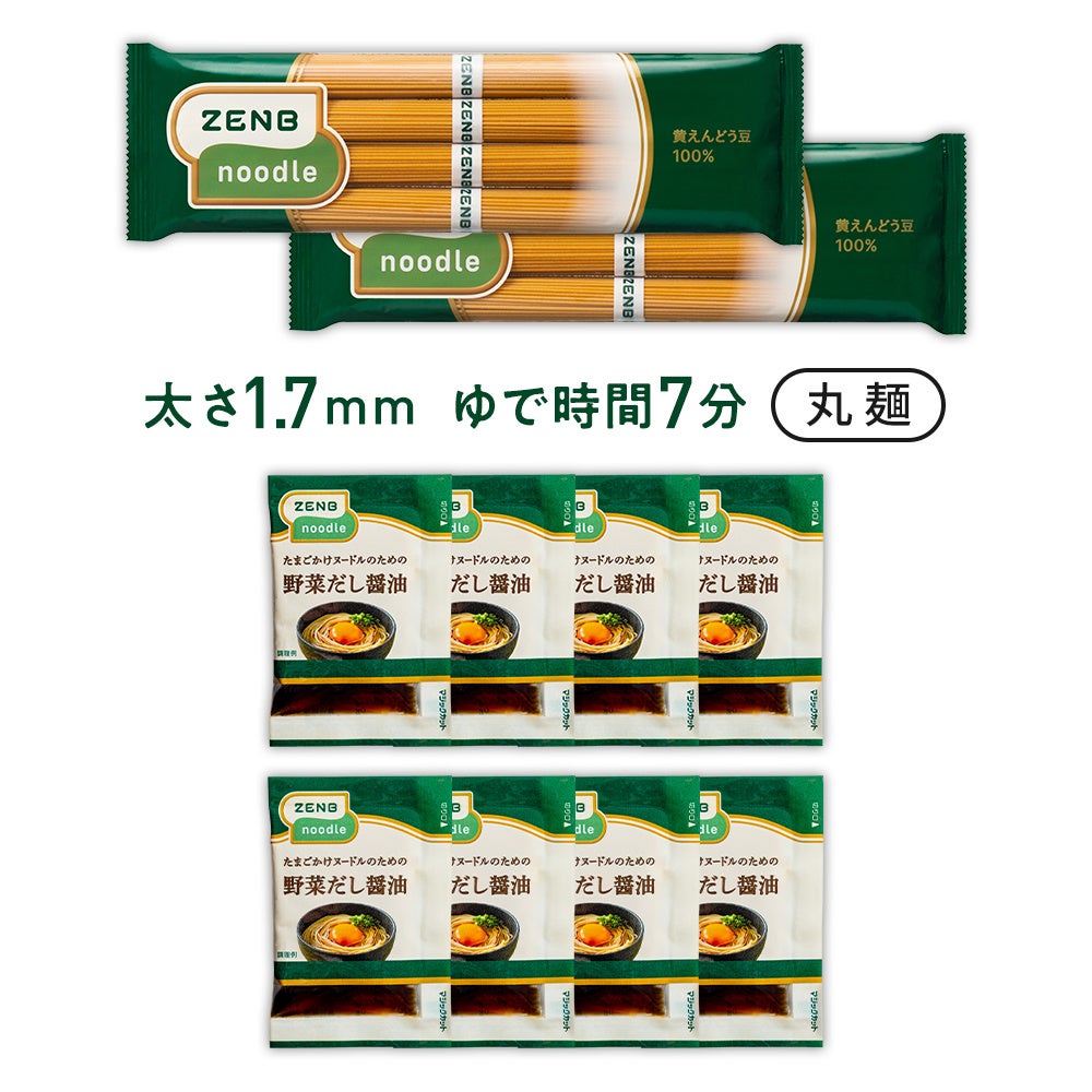1.送料無料 8食 ZENBヌードル丸麺(2袋)+たまごかけヌードルのための野菜だし醤油(8袋)