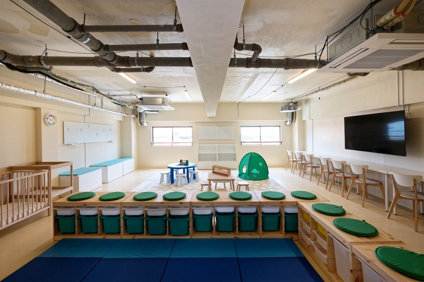 子どもたちが宿題をしたり、遊んだり、乳児がハイハイするスペースです。