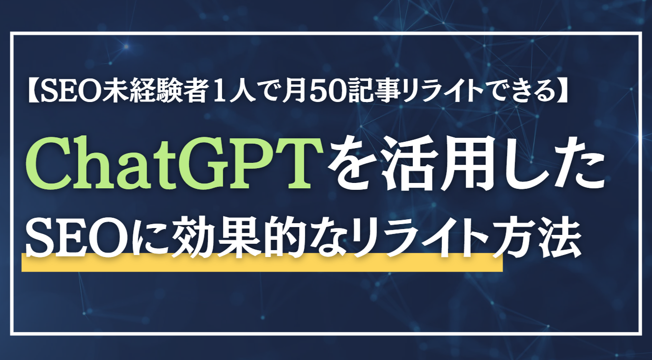 ~ChatGPTへの指示の出し方、ChatGPTを活用して作業工数を激減させる活用法、SEO対策の最新トレンド、SEO記事リライトの具体的な方法を公開~