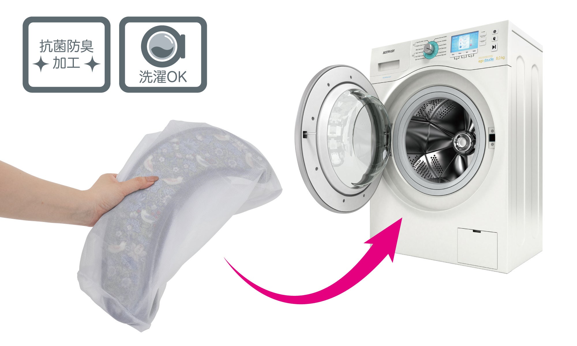 ネットに入れて洗濯機で丸洗いができ、繰り返し使えて清潔&ECO!抗菌防臭加工付き。
