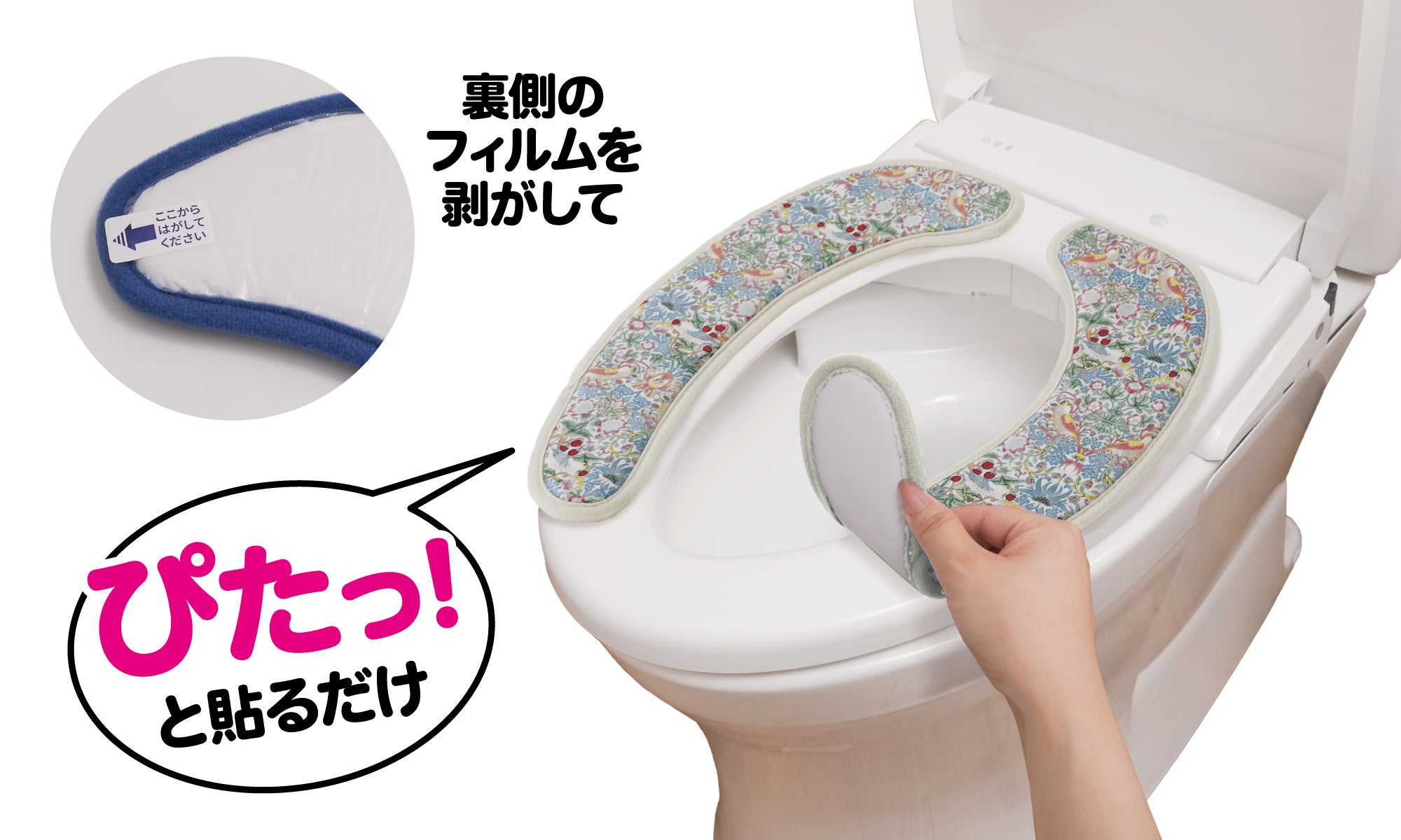 便座に合わせてピタッ!と貼るだけ。裏面全体が吸着するのでズレにくい!
