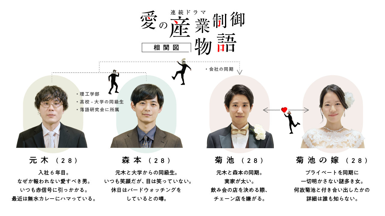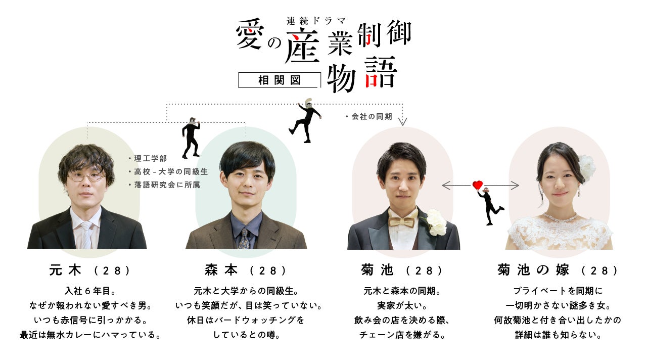 前作の「就職活動中の大学生の日常」という設定から、今作では「同期の結婚式」へと舞台を移しま