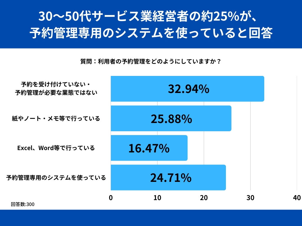 30~50代サービス業経営者の約25%が、予約管理専用のシステムを使っていると回答【予約管理に関するアンケート】