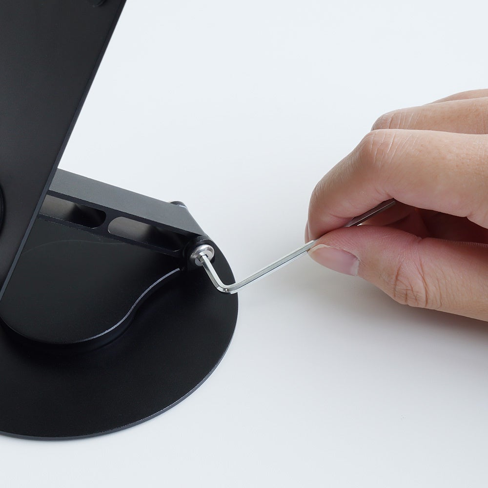 付属の六角レンチでヒンジの締め付けを調節できます。締め付けを強くしたり、弱めて折りたたみやすくしたり、ニーズに合わせたお好みの固さにできます。