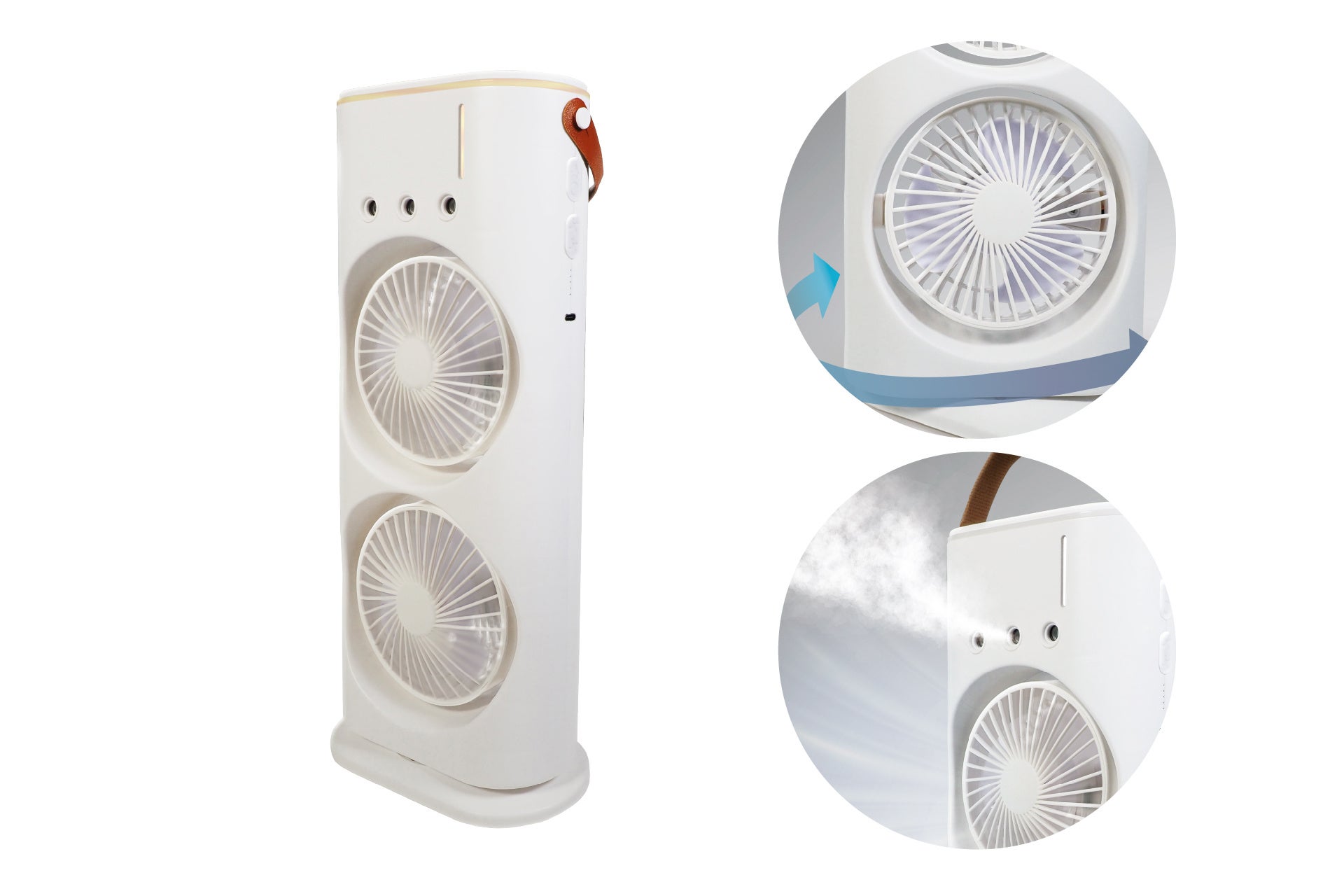 特徴:部屋を潤しながら、空気を循環させられる!微粒子ミスト&上下ファン同時に使用可能です。首振り機能でお部屋の空気を循環させるサーキュレーター代わりにもおすすめ!ファンのライト点灯機能や、自動首振りモードも搭載。風量は3段階に調節でき、USB充電式なのでどこでも設置できます。