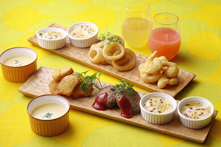 琵琶湖の恵み「ビワマス」を使った炊き込みご飯「あめのいお御飯」はレストラン ザ・ガーデン ディナービュッフェの定番メニューのひとつ。大津市比良の紫蘇ジュース「ヒラペリラ」を使ったゼリーなど、清涼感あふれるスイーツもご用意。また、ハンバーグ、チキンナゲット、グラタンなどお子様に人気のキッズメニューで、育ち盛りのお子様もお腹いっぱいお楽しみいただけます。