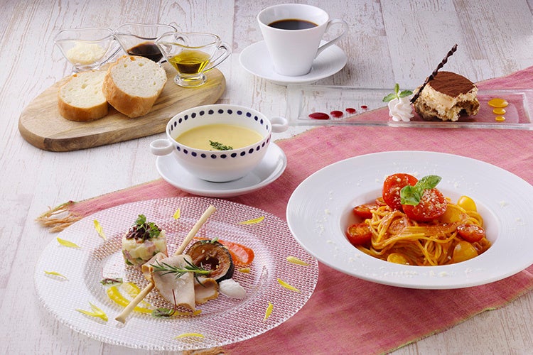その他「白身魚のオーブン焼き ワサビレモンソース」や「クミン香るカボチャのロースト」に加え、さっぱりとした「枝豆の冷製スープ」など、夏を感じるメニューを様々に取り揃えています。