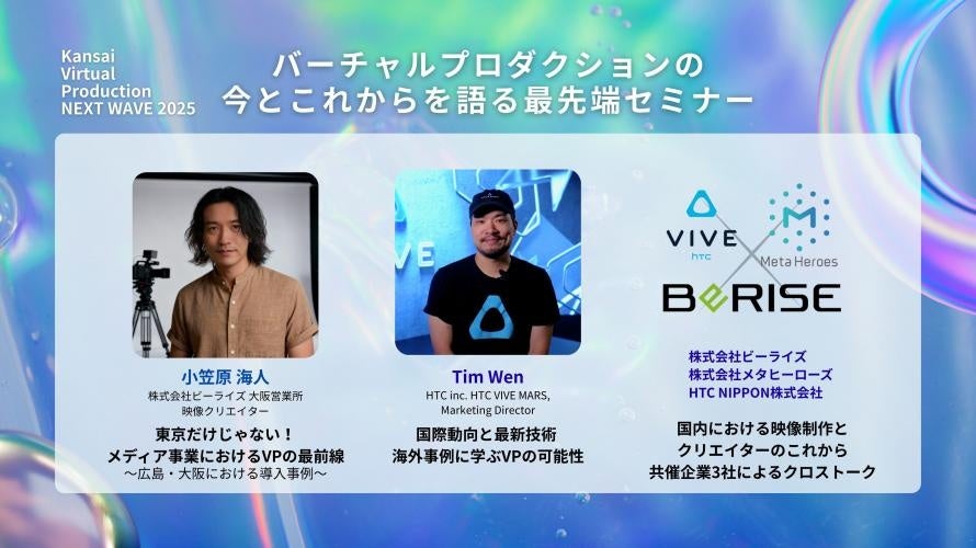 株式会社Meta Heroes(本社所在地:大阪府大阪市、代表取締役:松石和俊、以下「当社」)は、株式会社ビーライズ、HTC NIPPON株式会社との共催により、2024年12月19日(金)に、関西初となる次世代映像制作技術「バーチャルプロダクション(VP)」に特化した「Kansai Virtual Production Next Wave」セミナー&体験会を、当社運営のDX教育施設「Hero Egg」にて開催いたします。
